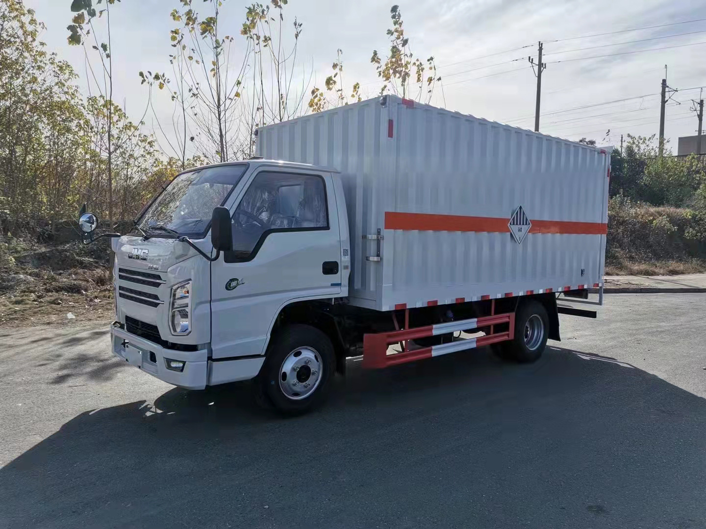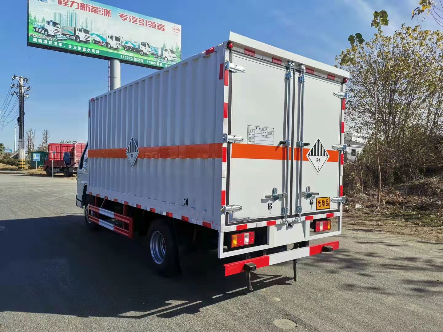 江鈴國(guó)六瓦楞板雜項(xiàng)危險(xiǎn)品車采用江鈴國(guó)六危險(xiǎn)品車底盤,單排駕駛室,原廠危化底盤,國(guó)六發(fā)動(dòng)機(jī),江鈴115馬力,防爆輪胎,空調(diào),ABS,限速80,前盤制動(dòng),排氣管前置,斷氣剎,方向助力. (全新規(guī)底盤)。外板采用冷軋板一次折彎成型,內(nèi)飾為導(dǎo)電性能良好的合金板有透氣孔,復(fù)合加鉚合工藝,內(nèi)襯為矩形管骨架牢靠穩(wěn)定,骨架內(nèi)部填充為透氣防潮阻燃的擠塑板。廂體外部四周鋁合金型材包邊,底板和車廂前下部鋪橡膠皮,后門雙開(kāi),右側(cè)單開(kāi)側(cè)門,內(nèi)部裝固定貨物的臥環(huán),安裝煙霧報(bào)警器、防盜感應(yīng)器。車身附件靜電接地帶、滅火器、防火罩、危險(xiǎn)品三角燈、橙色反光帶、CCC反射器、菱形標(biāo)志牌、危險(xiǎn)品牌、安全告示齊全。
