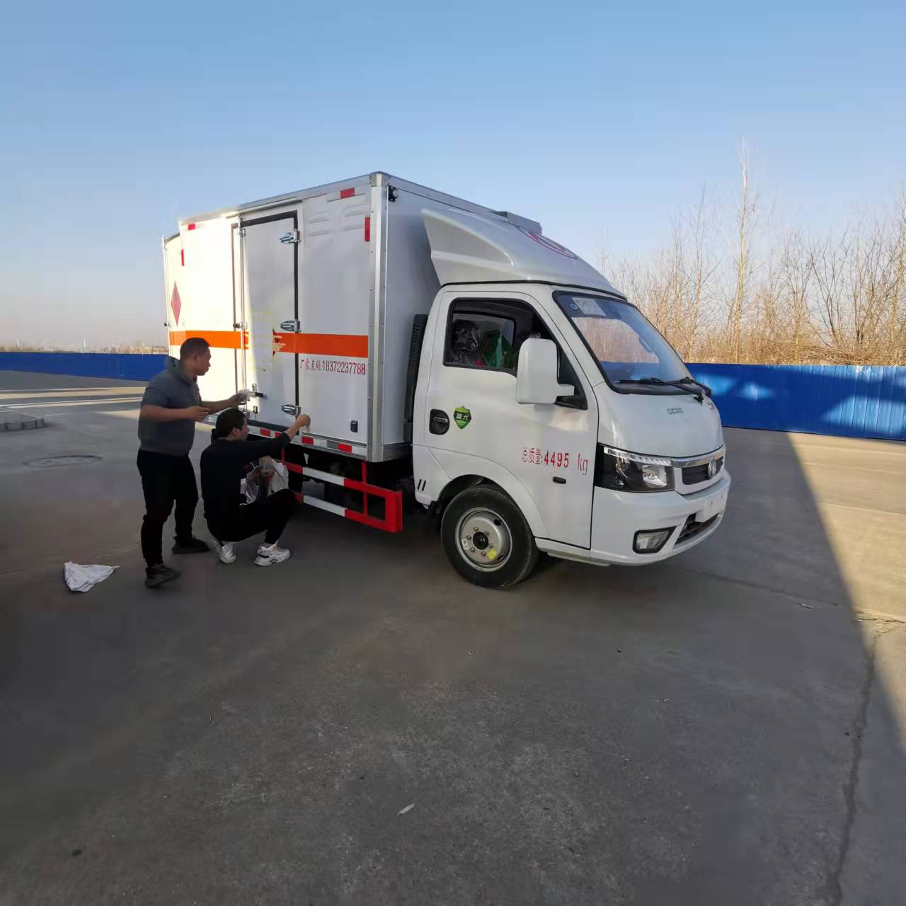 東風(fēng)途逸柴油2米6國六危險(xiǎn)品車貨箱尺寸2600*1850*1750 ,整車尺寸4700*1995*2750,總質(zhì)量4495KG,白色.2人座,嚴(yán)格按照公告尺寸制作 。箱體采用復(fù)合結(jié)構(gòu)鉚接,帶一次性沖壓成型的百葉窗,內(nèi)飾為導(dǎo)電性能良好的合金板有透氣孔,內(nèi)襯為矩形管骨架牢靠穩(wěn)定,骨架內(nèi)部填充為透氣防潮阻燃的擠塑板。廂體外部四周鋁合金型材包邊,底板和車廂前下部鋪橡膠皮,后門雙開,右側(cè)單開門,內(nèi)部兩邊各安裝2排卡槽+10公分高的靜電膠皮,安裝煙霧報(bào)警器、防盜感應(yīng)器。車身附件靜電接地帶、滅火器、防火罩、危險(xiǎn)品三角燈、橙色反光帶、CCC反射器、菱形標(biāo)志牌、危險(xiǎn)品牌、安全告示齊全。