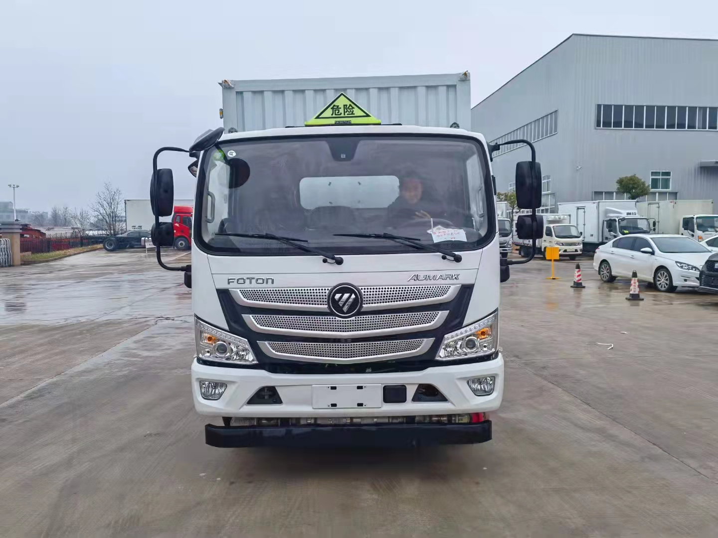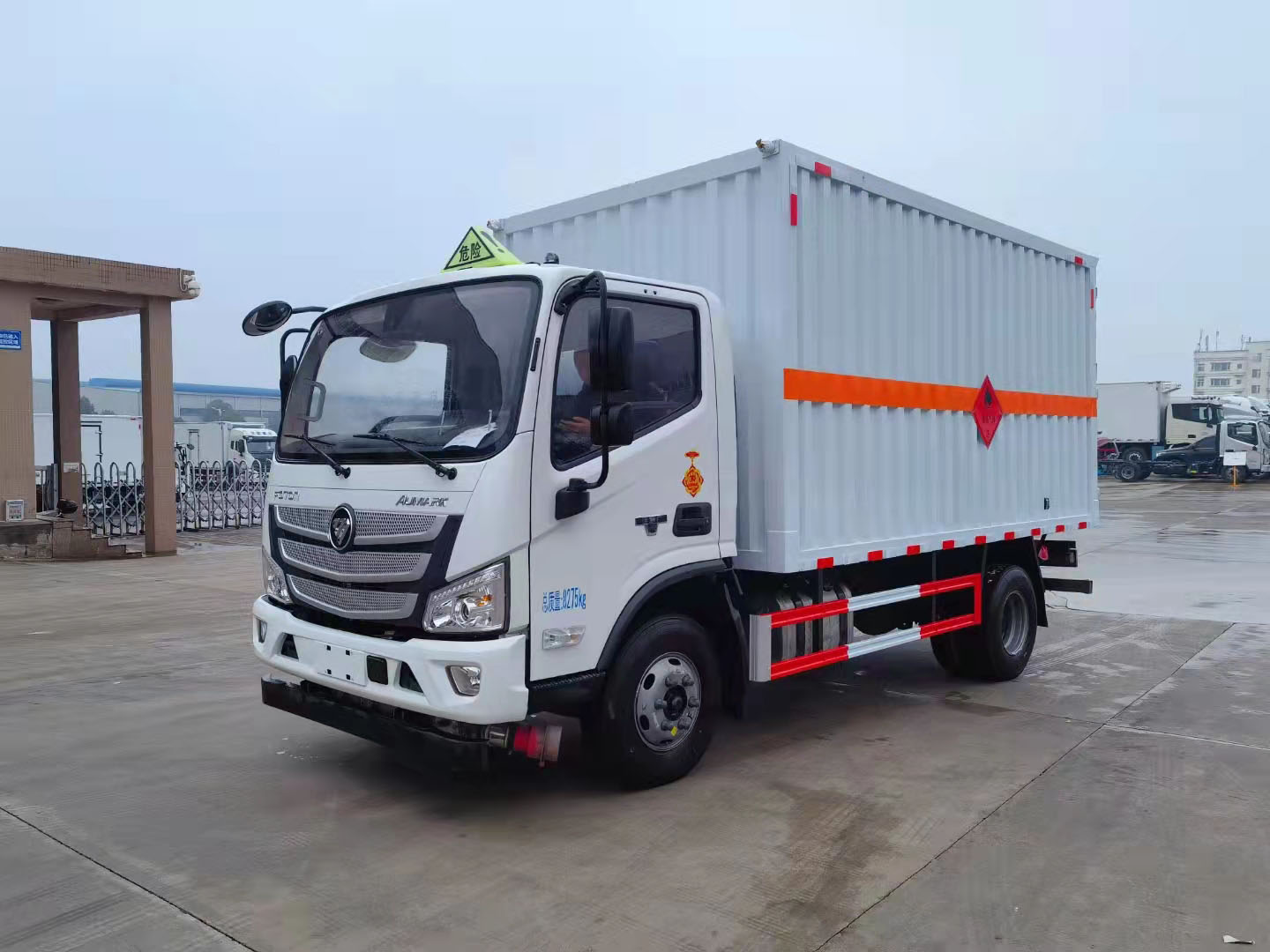 福田歐馬可黃牌4米2帶雙側門危險品車整車型號:CSC5088XRQBK6,貨廂4.08米,核載4.3噸,發動機可選康機3.8排量156馬力或康機2.8排量156馬力。 福田歐馬可黃牌危險品廂式車采用福田歐馬可專用危險品車底盤,3800mm軸距,福田歐馬可寬體駕駛室,康明斯156馬力發動機,6檔變速箱,6.5噸后橋,9R22.5 14PR輪胎,斷氣剎,中控鎖,電動門窗,多功能方向盤,定速巡航,空調,前碰撞預警,軌道偏移預警。整車尺寸:7180×2350×3400mm,廂體尺寸:5150×2200×2080mm,廂體嚴格按照公告尺寸制作,外板采用1mm厚冷軋板有一次性成型的百葉窗,內飾為導電性能良好的鋁板有透氣孔,內襯為矩形管骨架牢靠穩定,內部填充為透氣防潮阻燃的擠塑板,四種材料經現代工藝復合而成,廂體外部上下鋁合金型材包邊,底板和車廂前下部鋪橡膠皮,后門雙開,右側前部單開門,內部有固定貨物的臥環,車輛外部有靜電帶、滅火器、防火罩,車廂內安裝煙霧提示器和門防盜提示器,嚴格按照國家危險品相關法規張貼。