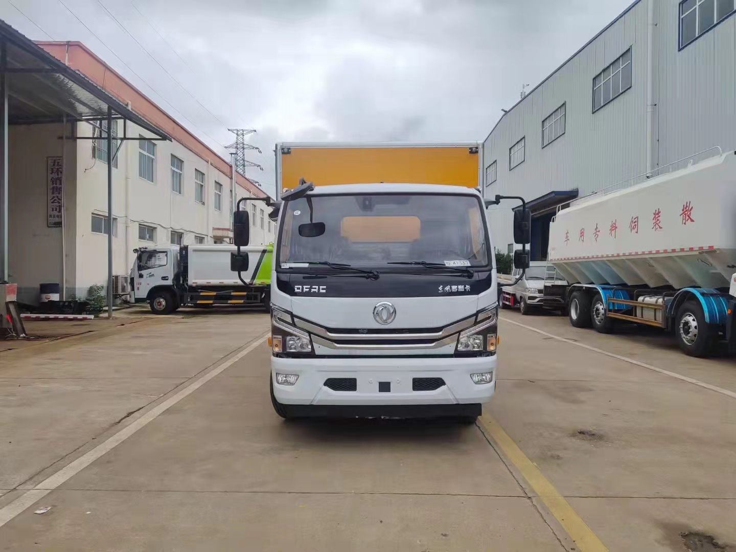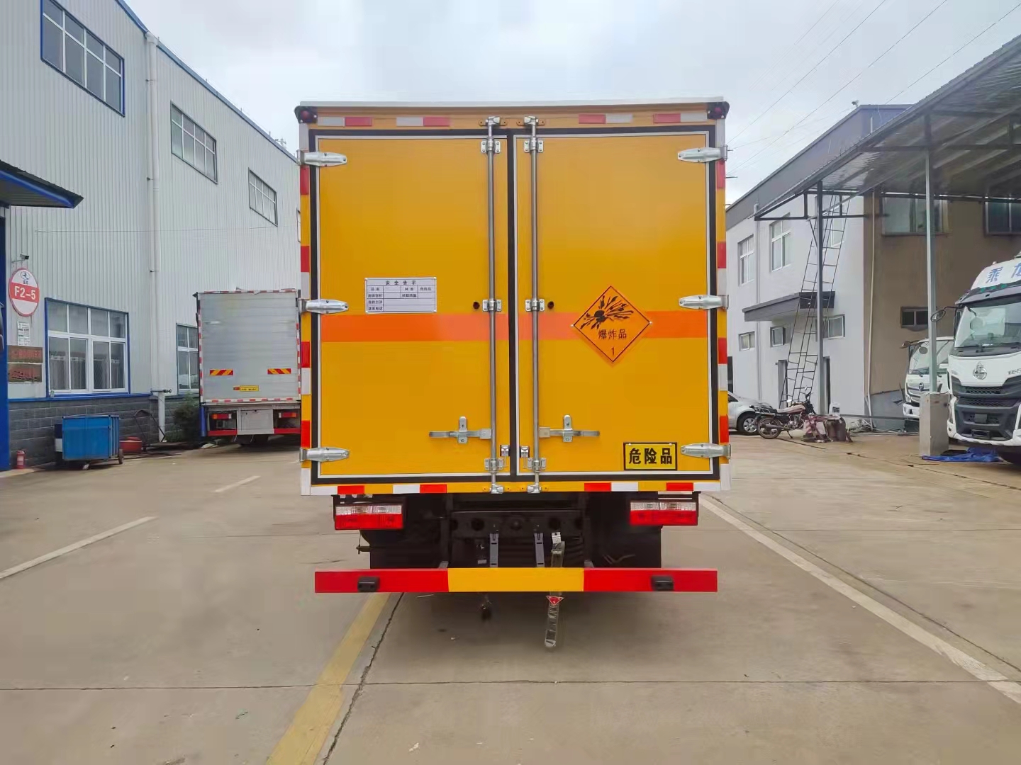 東風多利卡D7國六帶前開側門爆破器材運輸車嚴格按照公告尺寸制作,外板采用1mm厚冷軋板有一次性成型的百葉窗,內飾為導電性能良好的鋁板有透氣孔,內襯為矩形管骨架牢靠穩定,內部填充為透氣防潮阻燃的擠塑板,四種材料經現代工藝復合而成,廂體外部上下鋁合金型材包邊,底板和車廂前下部鋪橡膠皮,后門雙開,右側中部單開門,內部有固定貨物的臥環,車輛外部有靜電帶、滅火器、防火罩,車廂內安裝煙霧報警器和門防盜報警器,嚴格按照國家危險品相關法規張貼.