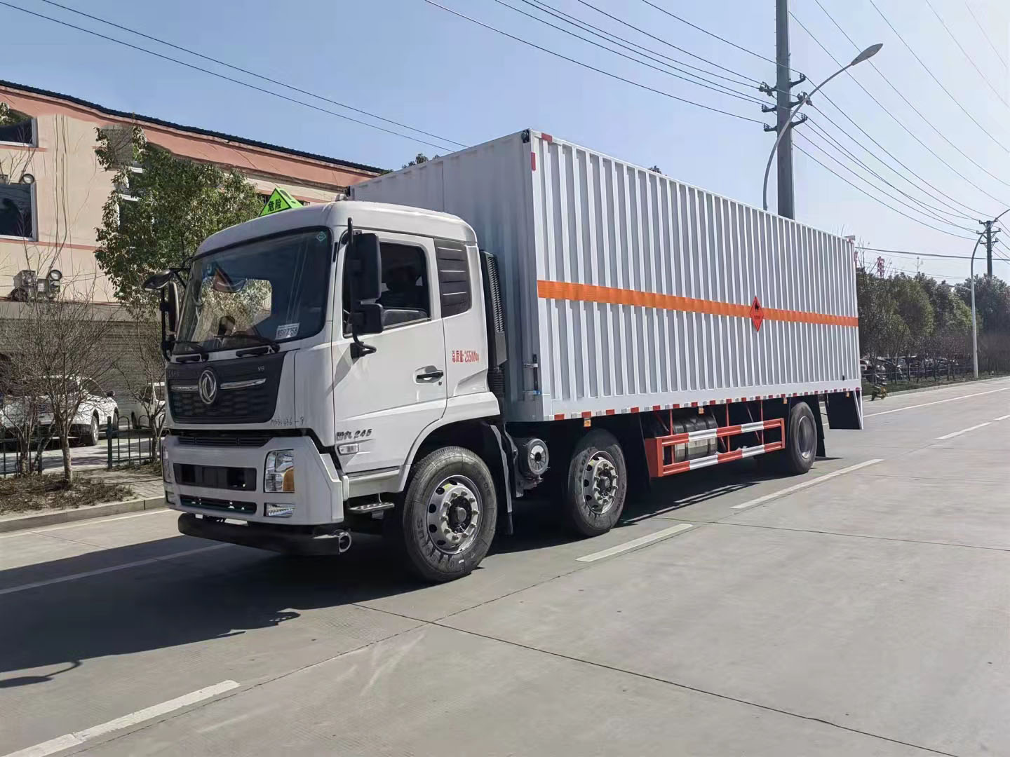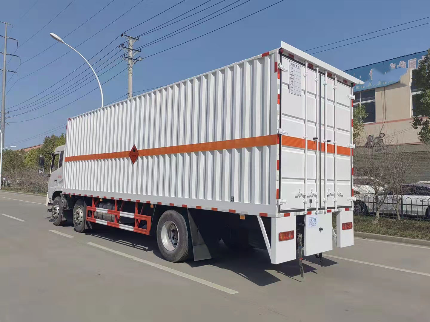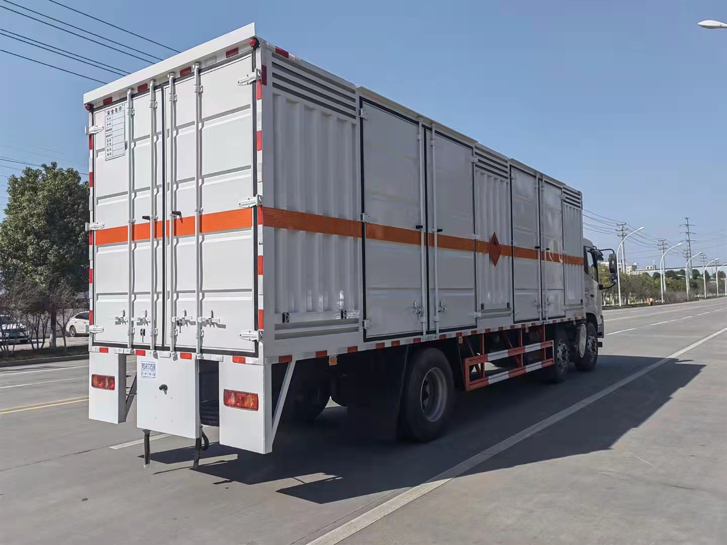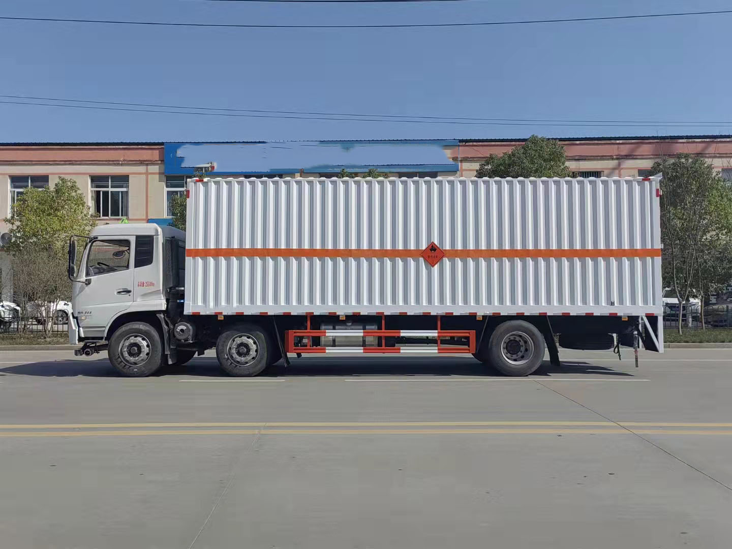 東風(fēng)天錦三軸帶雙開側(cè)門瓦楞板危險(xiǎn)品車廂體為金屬骨架結(jié)構(gòu),外板采用靜電屏蔽冷軋鋼板。底板為花紋板,上鋪防靜電膠皮。右側(cè)開單側(cè)門,廂內(nèi)兩側(cè)加裝固定貨物臥環(huán),門框帶防盜報(bào)警器,廂體頂部裝煙霧報(bào)警器。隨車工具、危險(xiǎn)品頂燈、防火帽、兩個(gè)滅火器。
