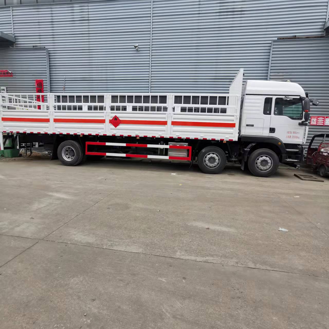 汕德卡國六三軸氣瓶車外形尺寸:12000*2500/2550*3500/3650,廂體尺寸:,9400*2400/2450*800,帶活動蒼欄,底板鋪防靜電膠皮。其余標配,廂體顏色可選裝。可選裝欄板,可選裝液壓尾板,不超重,有環保,3C,安全達標。三角燈,滅火器,危險品標識,反光標等隨車工具。汕德卡國六三軸氣瓶車廠家提供上戶手續:底盤合格證,整車合格證,環保清單,四聯機動車上戶發票(發票聯/抵扣聯/報稅聯/注冊登記聯),車輛質保手冊,全國服務站名錄,隨車工具。