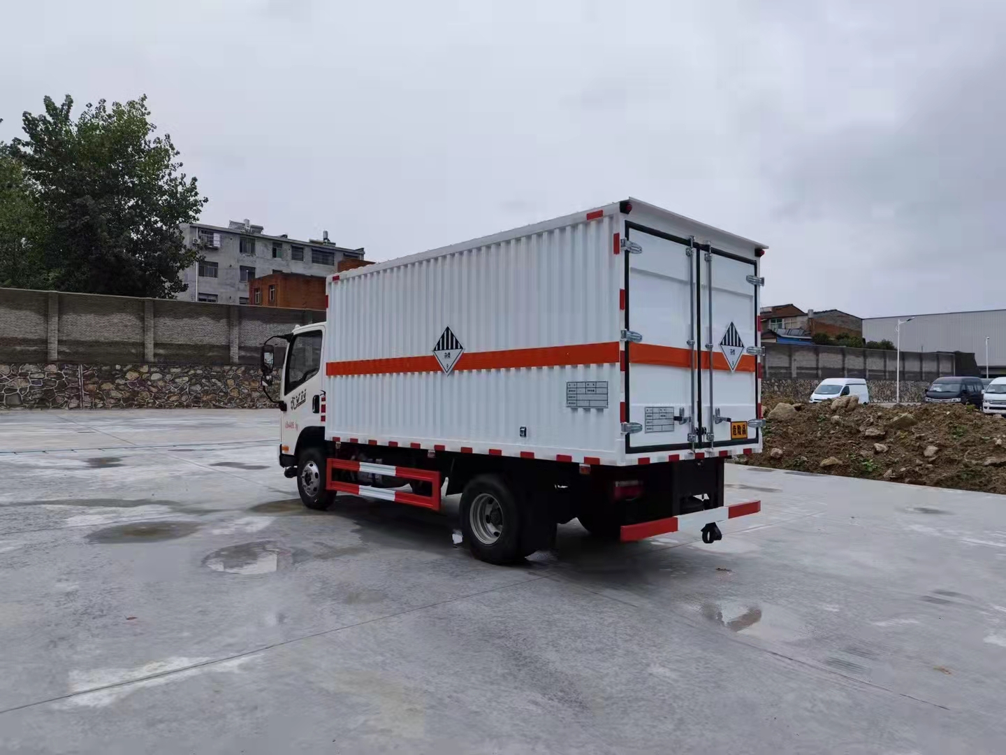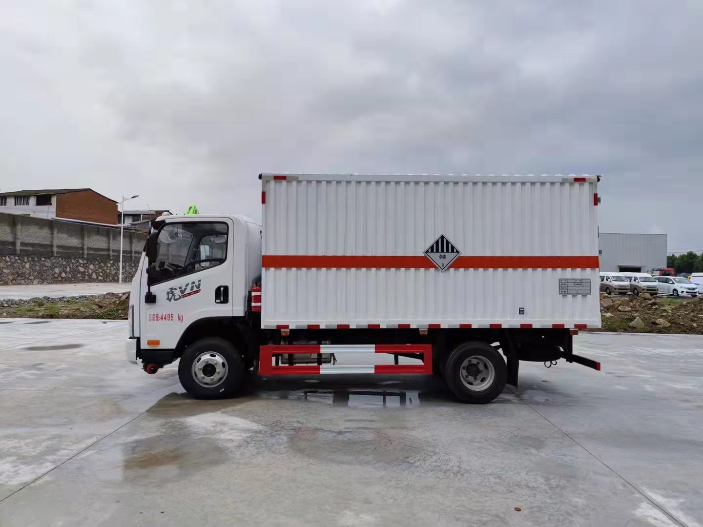 解放虎V國六瓦楞板藍牌危險品車采用的解放虎V濰柴130馬力發動機,專門針對二類易燃氣體廂式運輸,采用的是多功能方向盤,空調+電動門窗+中控鎖,80L鋁合金/錫柴為120L油箱,20L尿素箱/錫柴為16L,7.00R16真空胎,后處理器前置+排氣火花熄滅器+前盤后鼓制動器+限速79KM/H,北斗+GPRS行車記錄儀,爆胎應急安全裝置,帶靜電拖地帶,LDW+FCW。原廠危險品專用底盤。
