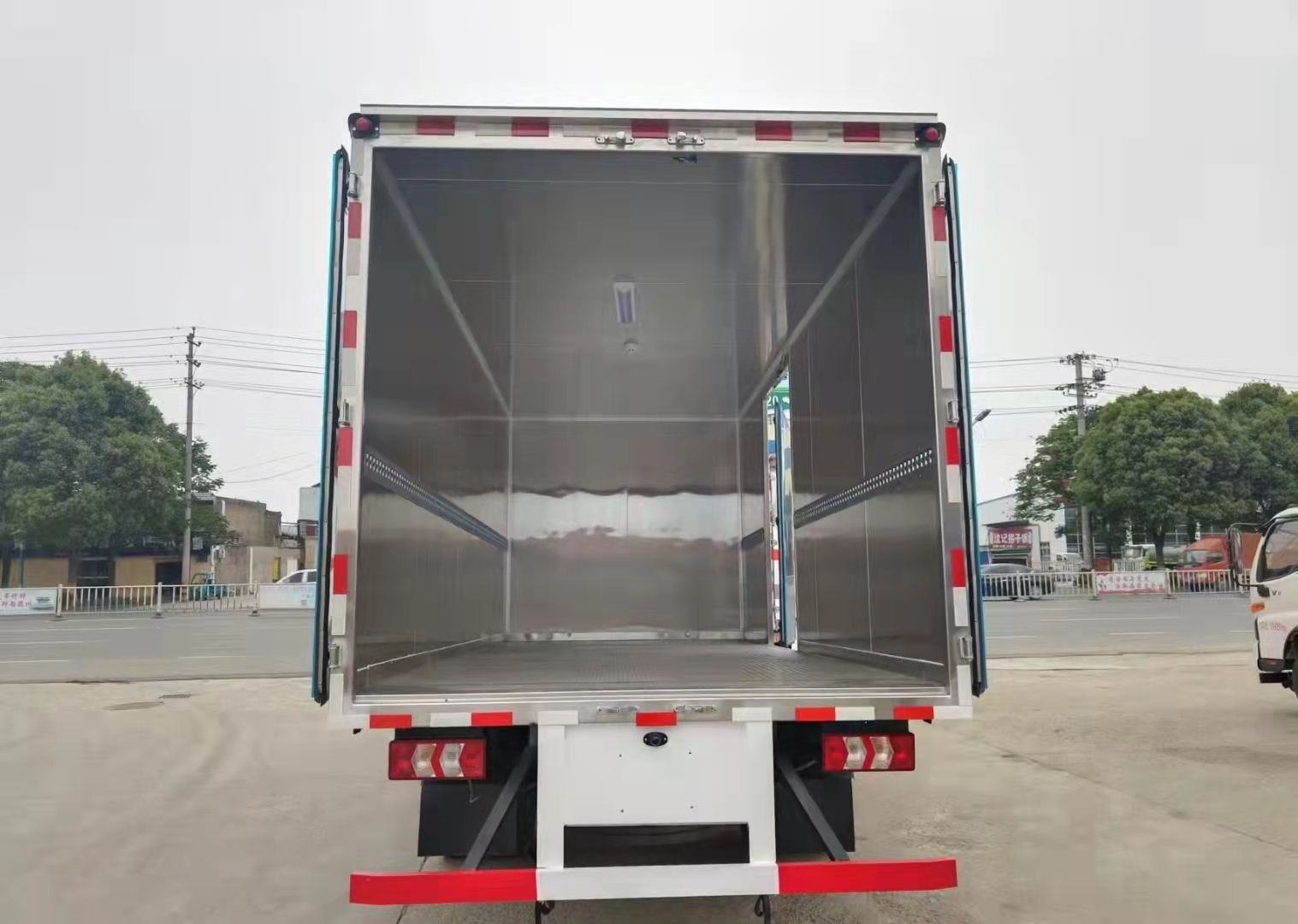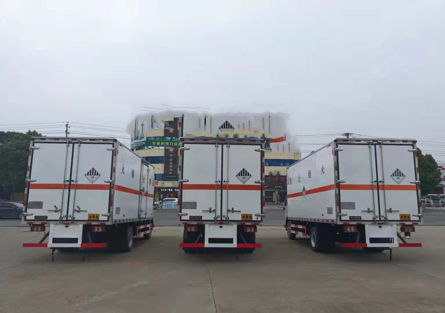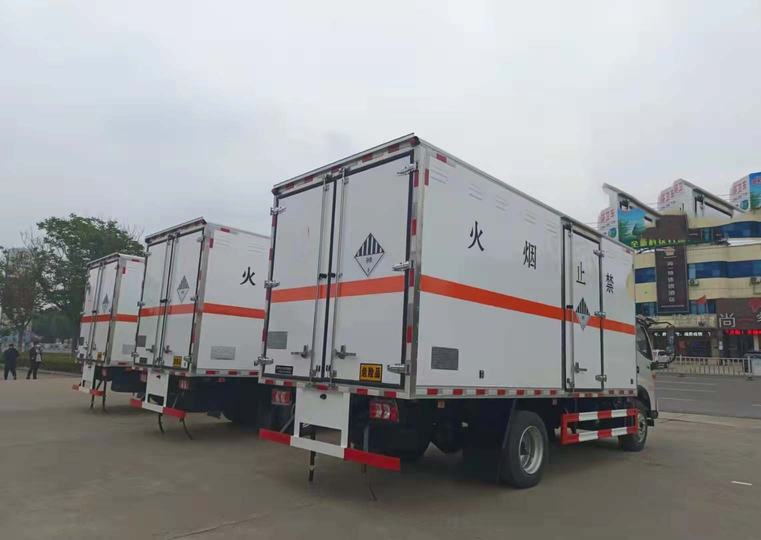 江淮駿鈴V7國六云內(nèi)165馬力危險品車整車尺寸:7100*2450*3420mm,廂體尺寸:5200*2300*2200mm。外板采用冷軋鋼板一次性沖壓成型的百葉窗,內(nèi)飾為導電性能良好的鋁板有透氣孔,內(nèi)襯矩形管骨架牢靠穩(wěn)定,骨架內(nèi)部填充為透氣防潮阻燃的擠塑板。廂體外部四周鋁合金型材包邊,底板和車廂前下部鋪橡膠皮,后門雙開,右側選裝側開門,內(nèi)部安裝固定貨物的臥環(huán)或腰欄,安裝煙霧報警器、防盜感應器。車身附件靜電接地帶、滅火器、防火罩、危險品三角燈、橙色反光帶、CCC反射器、菱形標志牌、危險品牌、安全告示齊全。