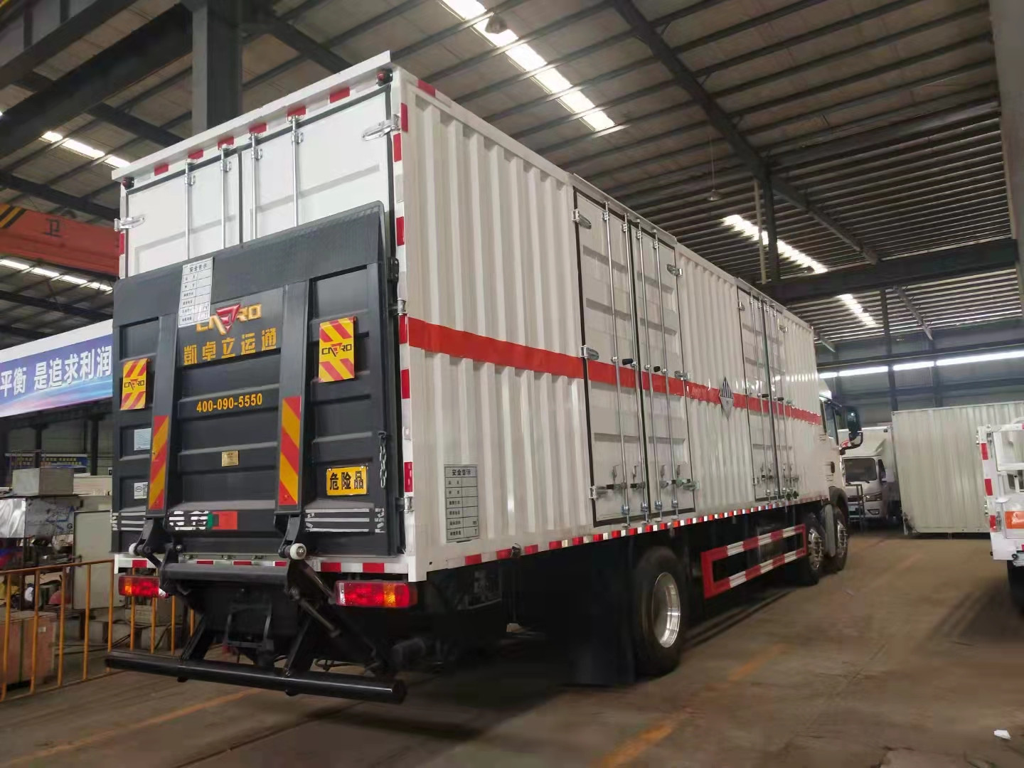 汕德卡國六9米6危險(xiǎn)品車采用的是EBS電空制動(dòng)系,F(xiàn)CWS/LDWS前撞/車道偏離預(yù)警,TPMS前軸單臺(tái)胎壓監(jiān)測(cè)。帶兩個(gè)滅火器、一個(gè)防火帽,靜電帶,隨車工具。罐體及杠貼反光條、反光帶、安全告示、貼 “易燃” 標(biāo)。介質(zhì):汽,柴油。整車具備燃油公告,我方提供車輛上戶所需的國六底盤證、整車合格證、罐檢報(bào)告、探傷檢測(cè)報(bào)告、海底閥證明。保證此款公告帶環(huán)保和燃油。外板采用冷軋鋼板一次性沖壓成型的百葉窗,內(nèi)飾為導(dǎo)電性能良好的鋁板有透氣孔,內(nèi)襯矩形管骨架牢靠穩(wěn)定,骨架內(nèi)部填充為透氣防潮阻燃的擠塑板。廂體外部四周鋁合金型材包邊,底板和車廂前下部鋪橡膠皮,后門雙開,右側(cè)選裝側(cè)開門,內(nèi)部安裝固定貨物的臥環(huán)或腰欄,安裝煙霧、防盜感應(yīng)器。車身附件靜電接地帶、滅火器、防火罩、危險(xiǎn)品三角燈、橙色反光帶、CCC反射器、菱形標(biāo)志牌、危險(xiǎn)品牌、安全告示齊全。