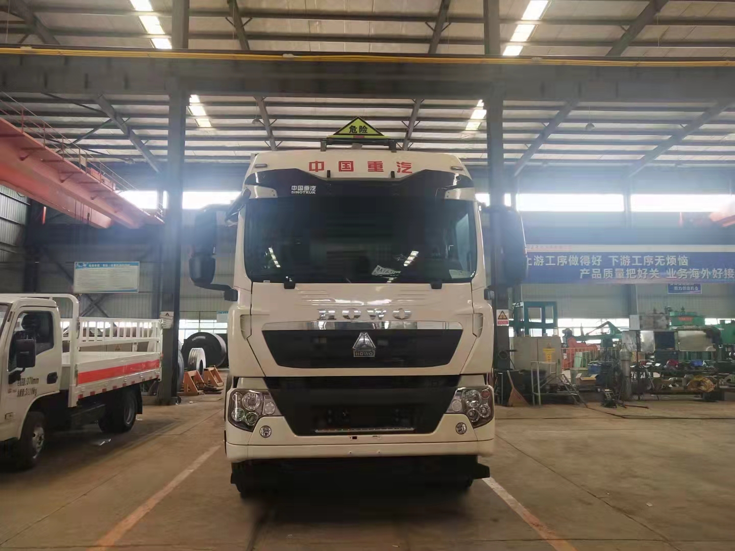 汕德卡國六9米6危險(xiǎn)品車采用的是汕德卡 G5專用車,G5-F駕駛室 ;MC07H.35-60發(fā)動(dòng)機(jī);HW13709XSTC2變速箱+HW70法蘭式取力器;VPD75D前軸(盤);MCY11BGS自調(diào)臂雙后橋(鼓);速比4.63;雙層車架(8+4/280);前少后空氣懸架(3/3/-/-);博世方向機(jī);前置排氣系統(tǒng);EBS+ESC;高位杠(全金屬);295/80R22.5;400L油箱;LDWS+FCWS;旋鈕式PTO;重汽智能通B版;電磁式電源開關(guān);轉(zhuǎn)向輪爆胎應(yīng)急裝置。