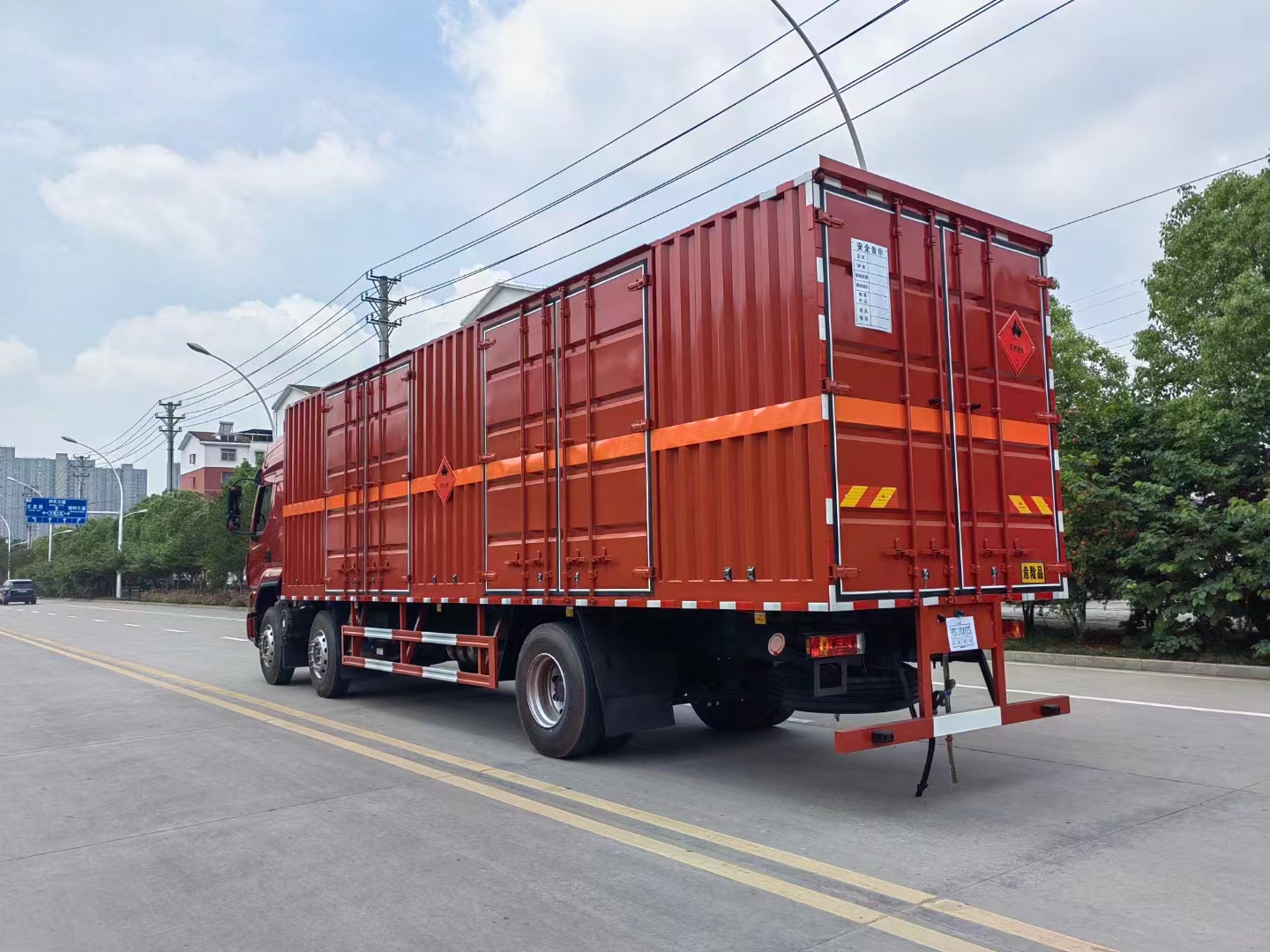 柳汽三軸國六帶雙開側門瓦楞板采用的是H5駕駛室,8JS105TA,Φ430離合,2*5.5T盤式前橋,后橋440/4.875/加寬制動器,板簧3/3/-,282(8)車架,400L(鋁)油箱,國產方向機,12R22.5,前機械后氣囊駕駛室懸置、電動液壓翻轉、夾層玻璃、電動玻璃升降器、針織帶調高氣囊司機座椅、電磁離合風扇、全新內飾、LCD液晶儀表、MP3+收音機、自動空調、定速巡航系統、國產閥、ABS、車載終端(行駛記錄儀+兼容北斗GPS)、外部遮陽罩、鋁合金貯氣筒、中控鎖、自動調整臂、多態開關、真皮多功能方向盤、右轉提示音響、前置排氣管、前輪防爆胎應急安全裝置、盤式前橋、排氣火花熄滅器、危險品運輸頂燈、ECU限速裝置(限速80km/h)、駕駛室電源總開關、導靜電橡膠拖地帶、ESC防側翻系統、AEBS、TPMS、LDWS、FCW、T-BOX。