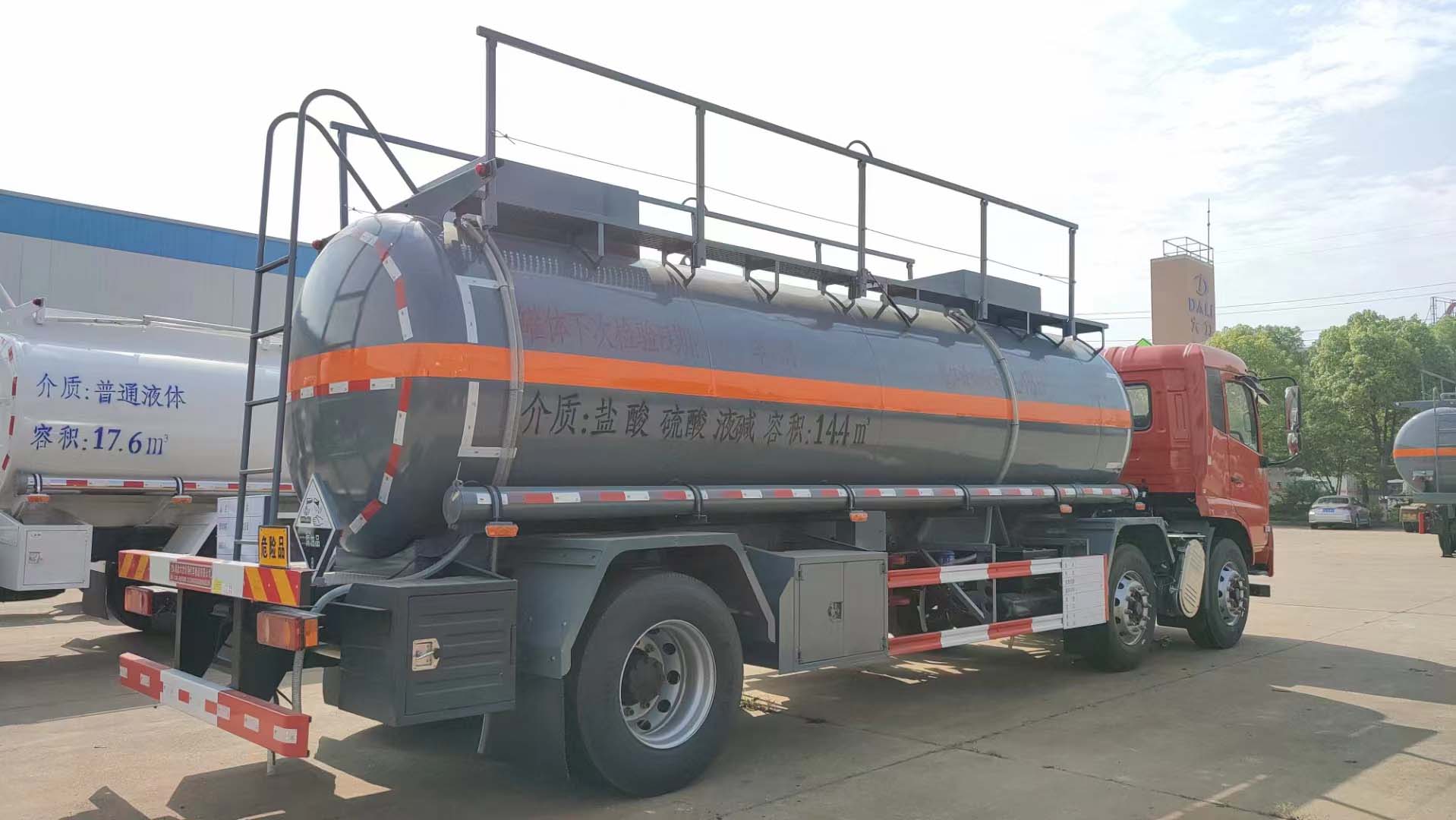 15噸罐式運輸可出鹽酸、硫酸、氫氧化鈉溶液、磷酸溶液、硝酸、乙酸溶液、等8類腐蝕品車輛,選擇哪一款更合適,用習慣天錦的車輛客戶,當然會優(yōu)先提出采用東風天錦三軸國六腐蝕品罐式運輸車,以下是詳細配置介紹: