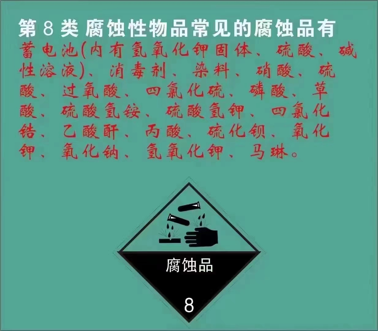 8)八類腐蝕品廂式運輸車,主要運輸硫酸、乙酸、氫氧化氯等;