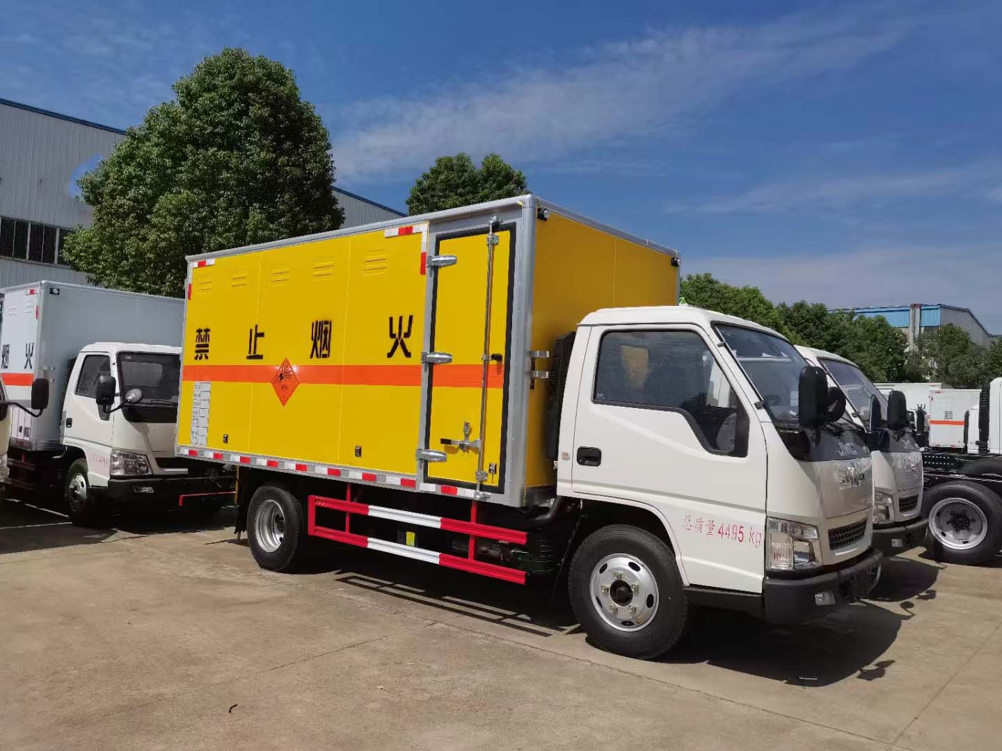 拉雷罐、炸薬、煙椛等物品都屬于一類危化品車,該類車型需要專用的車型,為了運輸方便,都選擇藍牌的車型,程力專汽為您推薦的是江鈴國六帶前開側門黃色危險品車,以下是詳細配置介紹: