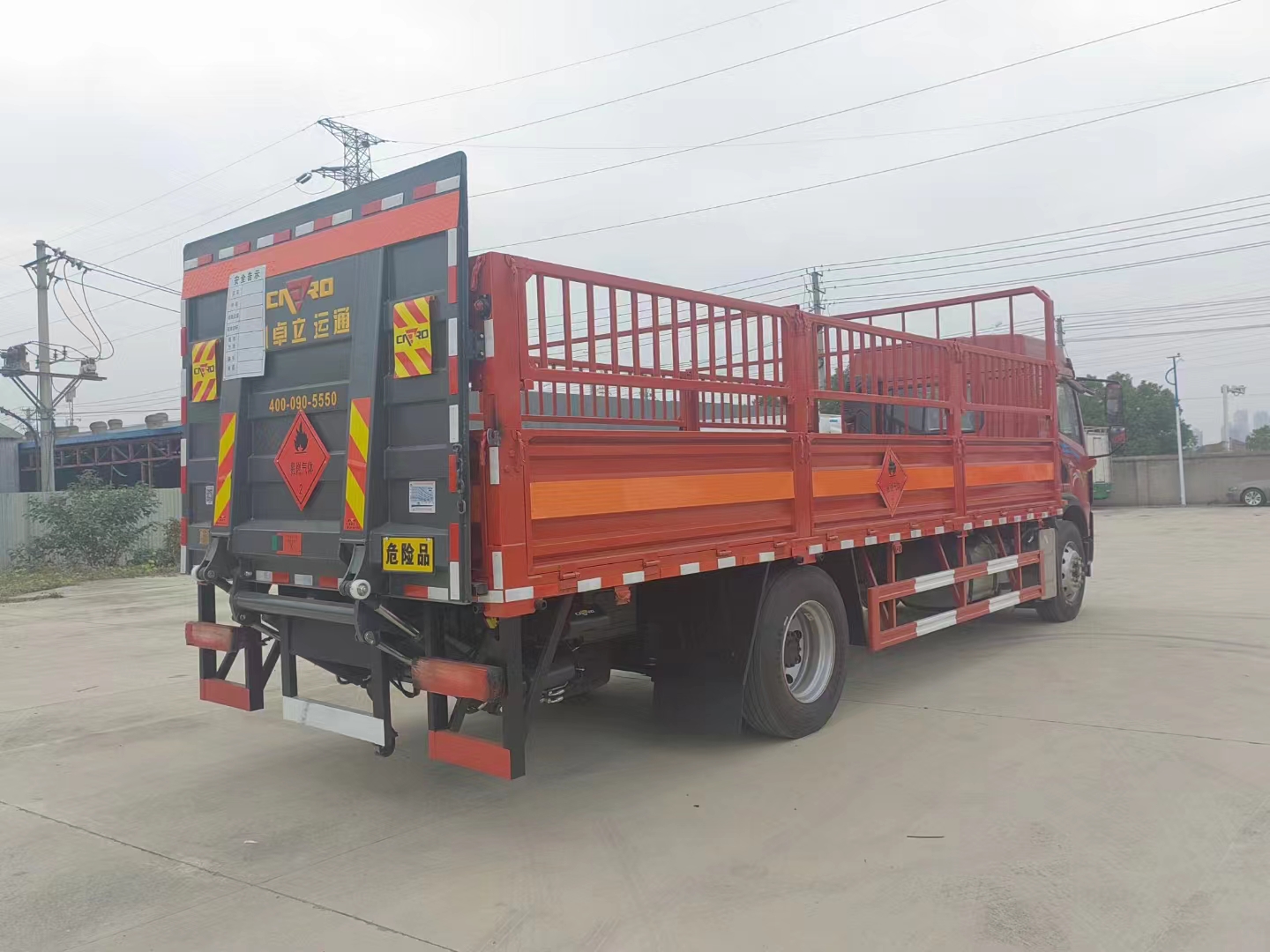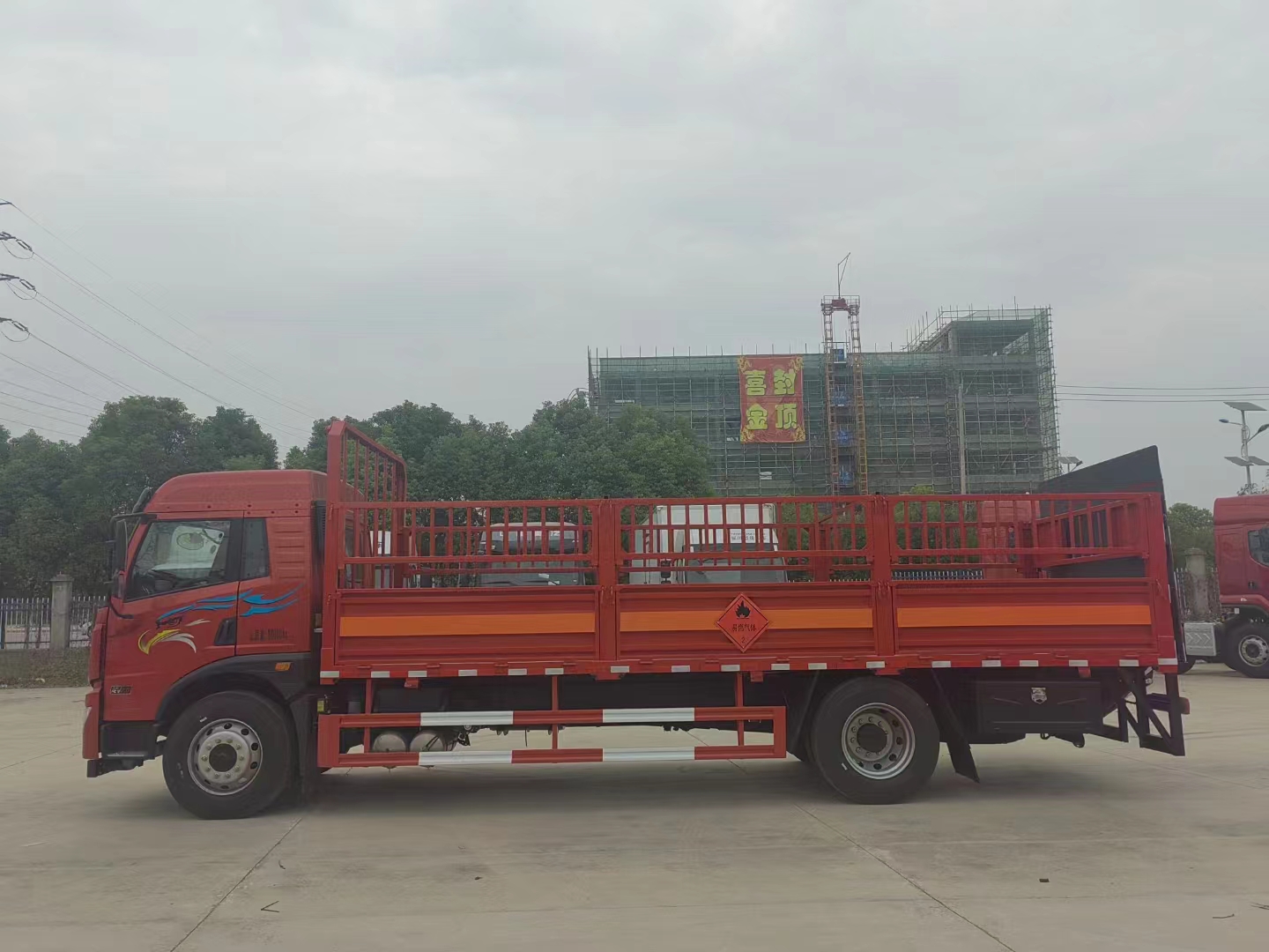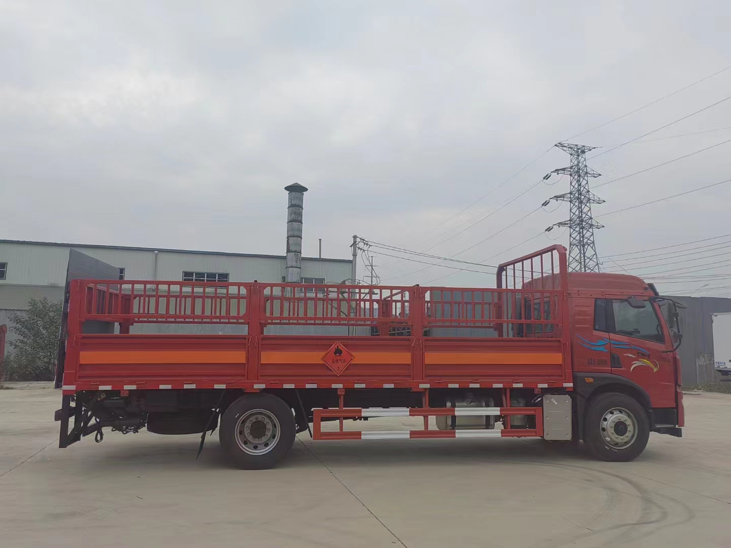 解放龍V國六6.8米氣瓶運輸車整車尺寸:9000× 2550×3200mm,廂體尺寸:6750×2450×600mm, 該車嚴格按照公告尺寸制作,底板采用5MM花紋板,底板上鋪靜電膠皮,帶可卸式高欄(瓦楞式欄板),配備滅火器,三角頂燈,靜電拖帶等,嚴格按照國家危險品法規進行“易燃氣體”標識粘貼等.
