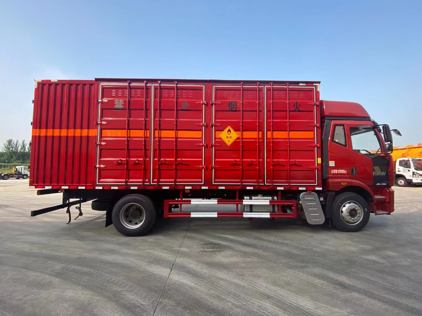 解放J6L國六6米8毒性氣體廂式運(yùn)輸車采用解放危險(xiǎn)品車底盤,大柴240馬力發(fā)動(dòng)機(jī),危化車專用底盤,帶200L鋁合金油箱,駱駝牌150AH蓄電池,帶電動(dòng)舉升、中控鎖、巡航系統(tǒng)、,前盤后楔制動(dòng)器,前橋爆胎應(yīng)急安全裝置,排氣管前伸,排氣火花熄滅器,帶靜電拖地帶,前橋帶胎壓監(jiān)測(cè),連續(xù)工作取力器及控制系構(gòu),帶前橋橫向穩(wěn)定桿,U型后處理器,限速79KM/H。