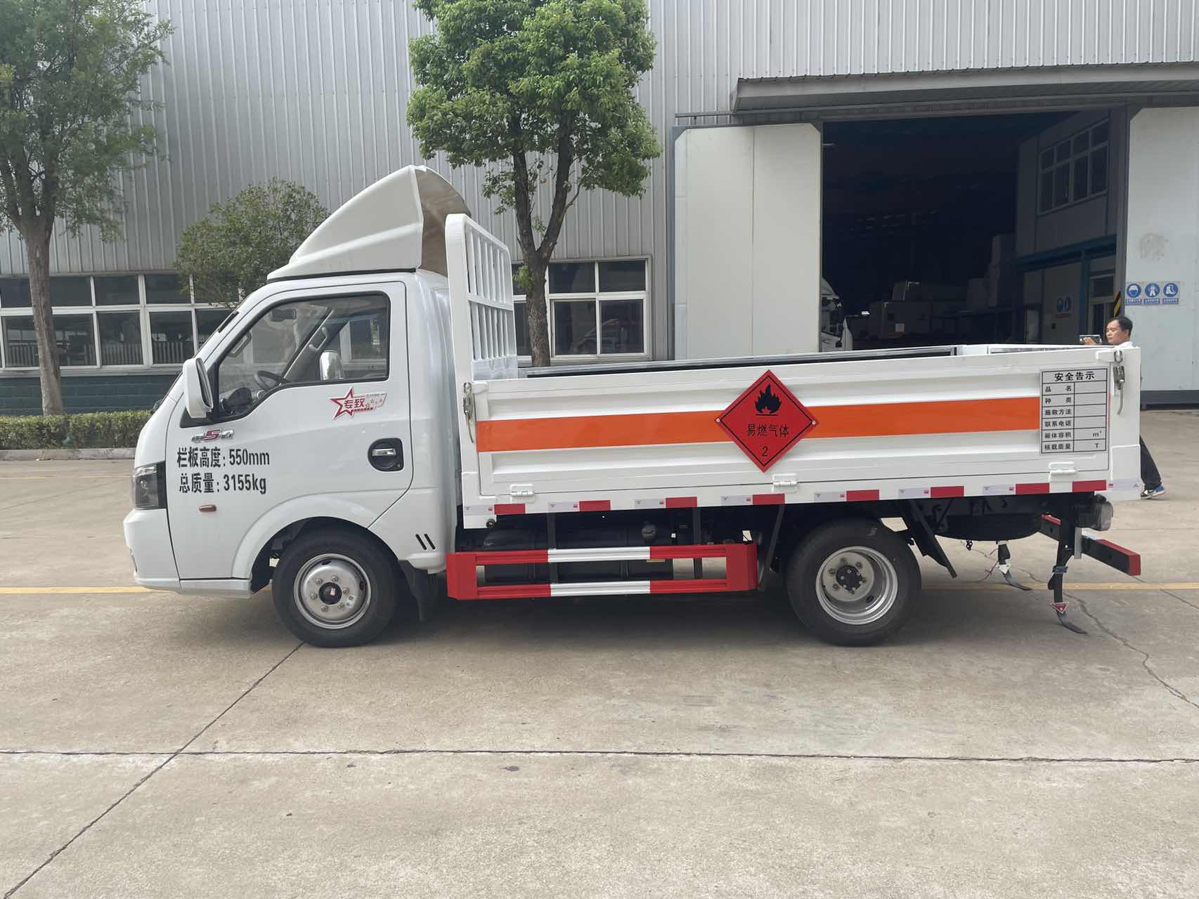 東風小型液化氣瓶車采用的是經典的東風藍牌途逸危險品車專用底盤,該車采用的是柳機112馬力發動機,帶中控鎖、電動門窗、原廠空調。小小的車型大的作用,該車承載力可達1.165噸,符合燃油公告。根據客戶運輸需求,該車可選擇低欄和高欄結構,若選擇高欄,可進行拆卸,客戶裝貨更方便。