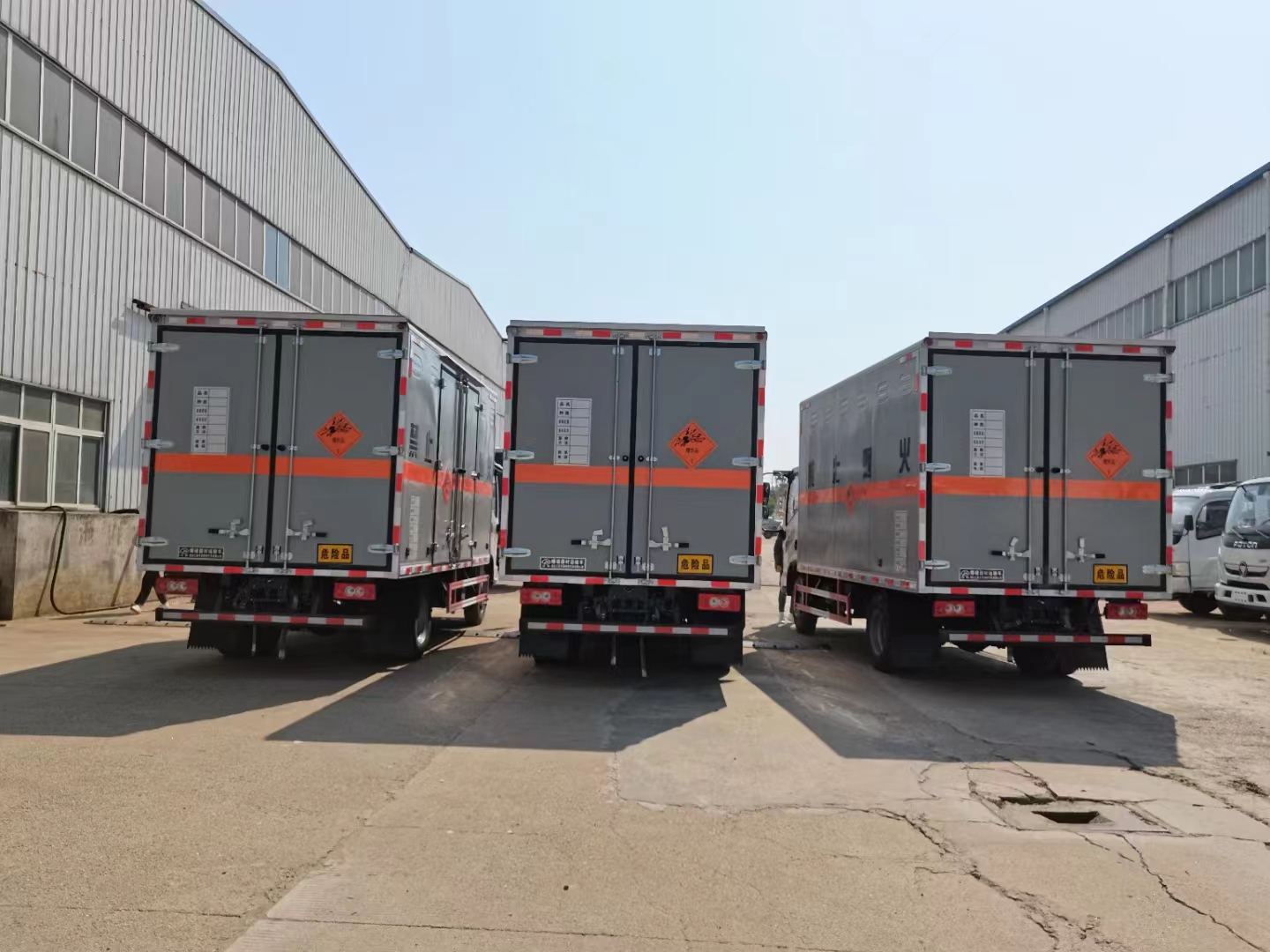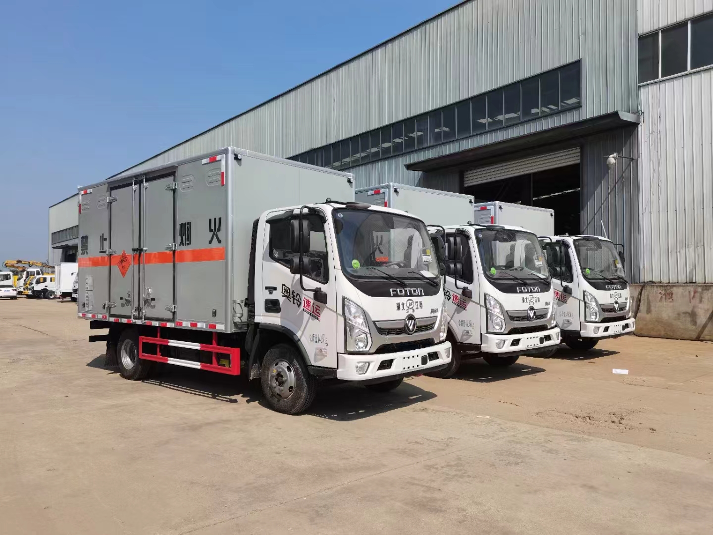 福田奧鈴爆破器材運輸車采用的是云內150馬力發動機,帶中控鎖、電動門窗、原廠空調,該車針對爆破運輸都采用的專用高箱體,配置有車道偏離和防碰撞預警,箱體帶可選烤漆板,箱體為雙層金屬結構,外板采用烤漆板帶百葉窗,內飾為導電性能良好的鋁平板有透氣孔,中間為矩形骨架結構內部填充防火阻燃材料,復合加鉚合工藝。廂體四周鋁合金包邊及包角。車廂底板上方鋪設防靜電膠皮,廂體內前臉50公分高鋪設防靜電膠皮。右側前開隔斷側門,整車尾部設置對開門,廂體內部兩側安裝捆綁貨物的臥環。廂體內部安裝煙霧報警器,門上安裝防盜報警感應器。