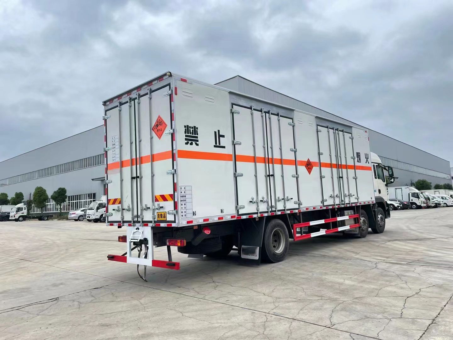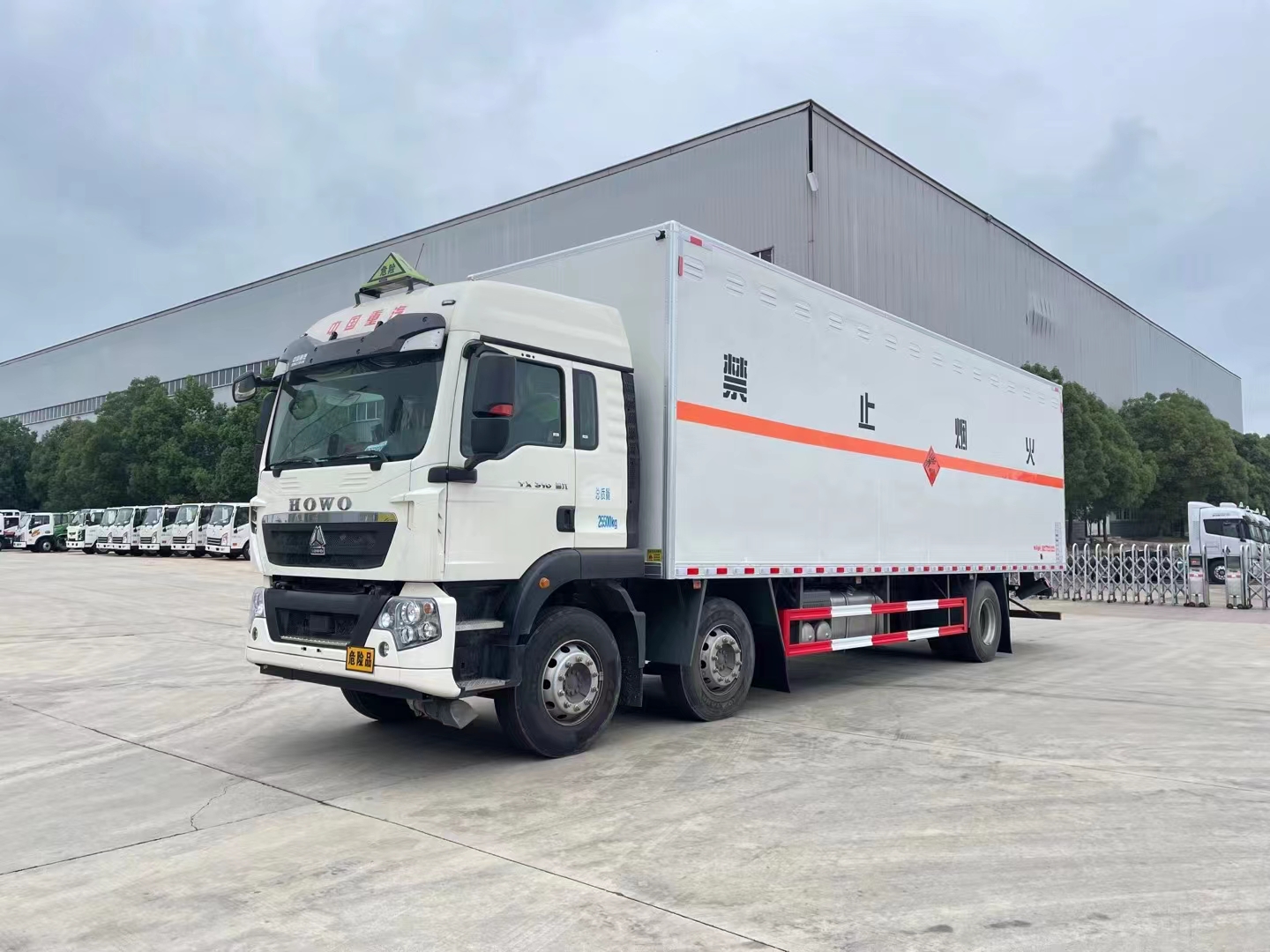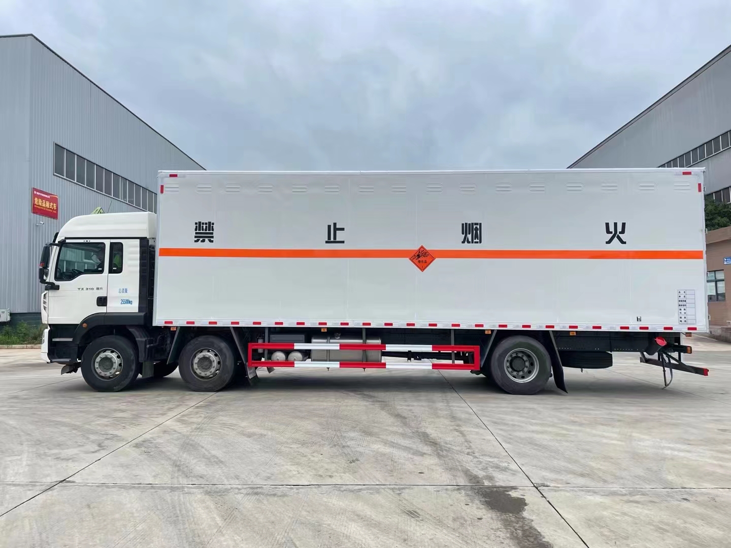 重汽豪沃9.6米三軸煙花爆竹運輸車采用的是豪沃專用危化品底盤,可選濰柴310馬力或濰柴250馬力,可帶高頂雙臥駕駛室,駕乘人數(shù)為3人,除了裝載駕駛員、爆破員還可以承載押運員。箱體內(nèi)部容積63.5方,德國曼310馬力發(fā)動機,9檔變速箱,295真空胎,速比4.63,400L油箱。采用的是HW95508STC變速箱;VPD75D前軸(盤);MCY11BES單后橋(盤);速比4.63;雙層車架(8+4/280);前少后空氣懸架(3/3/-);國產(chǎn)方向機;前置排氣系統(tǒng);EBS+ESC;中位保險杠(非金屬);鋁合金車輪(國產(chǎn));295/80R22.5;300L油箱;LDWS+FCWS(帶雷達);旋鈕式PTO;中國重汽智能通D版;電磁式電源開關;轉向輪爆胎應急裝置;選裝胎壓監(jiān)測系統(tǒng);(ZZ1267N56CGF1K/MC07.25-60)。