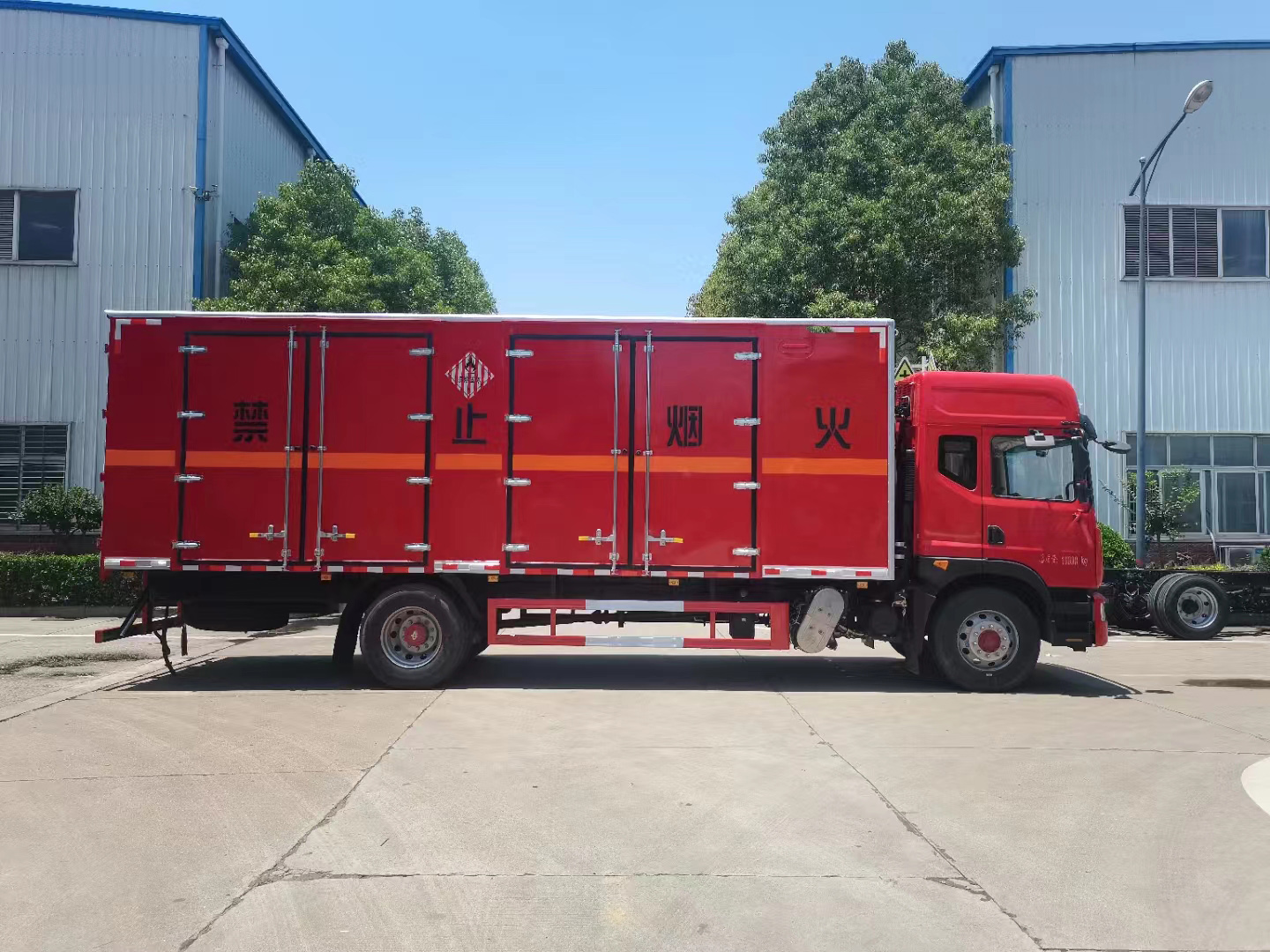 東風D9國六高頂雙危險品車采用的是專用危險品車底盤,康明斯220馬力發動機,帶中控鎖、電動門窗、原廠空調。以往該車都匹配的是平頂駕駛室,很多用過該車的客戶都說此類車輛主要是用于長途,一款高頂雙臥的駕駛室,可駕乘車輛時進行短暫的休息。該車匹配的是駕駛室寬體3人座,帶天窗透氣更方便,駕駛室帶儲物盒方便置放物品,駕駛帶皮座椅可調節,駕乘更舒適。該車儀表盤帶液晶顯示,該車貨箱尺寸可選7米6、6米8和6米2三種尺寸。箱體全部采用的是烤漆板,帶左右開門裝貨更方便。尾部加裝液壓尾板,整車不超重。