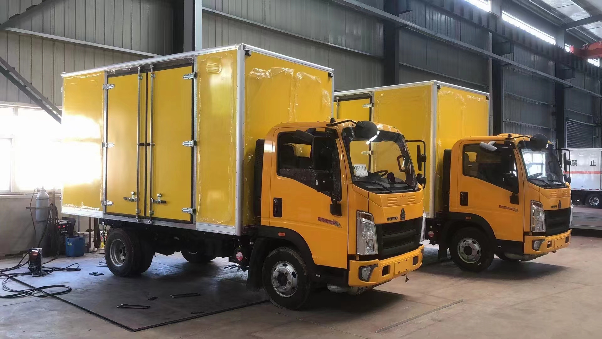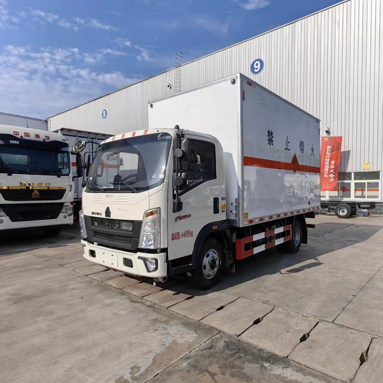 重汽豪沃2.4米高藍牌爆破器材運輸車采用的危險品專用駕駛室,濰柴130馬力發(fā)動機,該車設計盡現(xiàn),以設計之名開啟全新的境界,生活靈感和始終陪伴,為您每一次出發(fā)創(chuàng)造舒適與便捷。采用的是寬體駕駛室,3人座駕駛室,該車帶中控鎖、電動門窗、原廠空調(diào),匹配的是專用的防爆箱體。選用冷軋板折彎材料,貨廂基本結構為金屬骨架全金屬外蒙皮封閉式,金屬骨架應具有高強度和高剛度特點,金屬骨架管體尺寸不小于 20mm X 20 mm 度不小于 2 m,管件連接采用焊接方式。貨廂內(nèi)蒙皮的材料選用非燃燒性材料。內(nèi)壁采用鋁合金板蒙面。貨廂六面(包括底板)內(nèi)外蒙皮之間采用阻燃隔熱材料填充,金屬外蒙皮外側噴涂淺色防火漆。底板應使用可承重的鐵板或鐵木混合材料,所用木材必須經(jīng)過防火處理。地面應平整,如有焊口必須修平。
