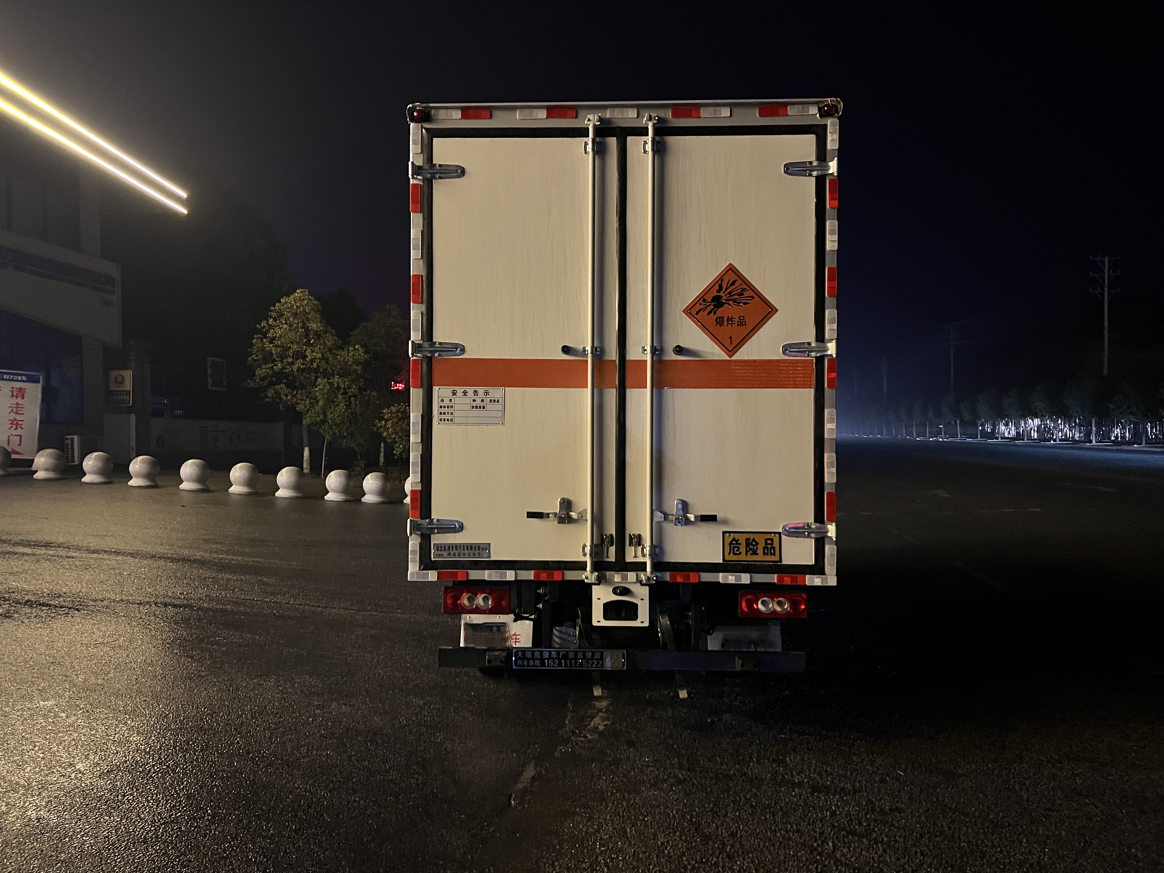 福田歐馬可國六藍牌20立方爆破車嚴格按照公告尺寸制作,外板采用1mm厚冷軋板有一次性成型的百葉窗,內(nèi)飾為導電性能良好的鋁板有透氣孔,內(nèi)襯為矩形管骨架牢靠穩(wěn)定,內(nèi)部填充為透氣防潮阻燃的擠塑板,四種材料經(jīng)現(xiàn)代工藝復合而成,廂體外部上下鋁合金型材包邊,底板和車廂前下部鋪橡膠皮,后門雙開,右側前部單開門,帶可卸式隔艙,內(nèi)部有固定貨物的臥環(huán),車輛外部有靜電帶、滅火器、防火罩,車廂內(nèi)安裝煙霧報警器和門防盜報警器,嚴格按照國家危險品相關法規(guī)張貼。