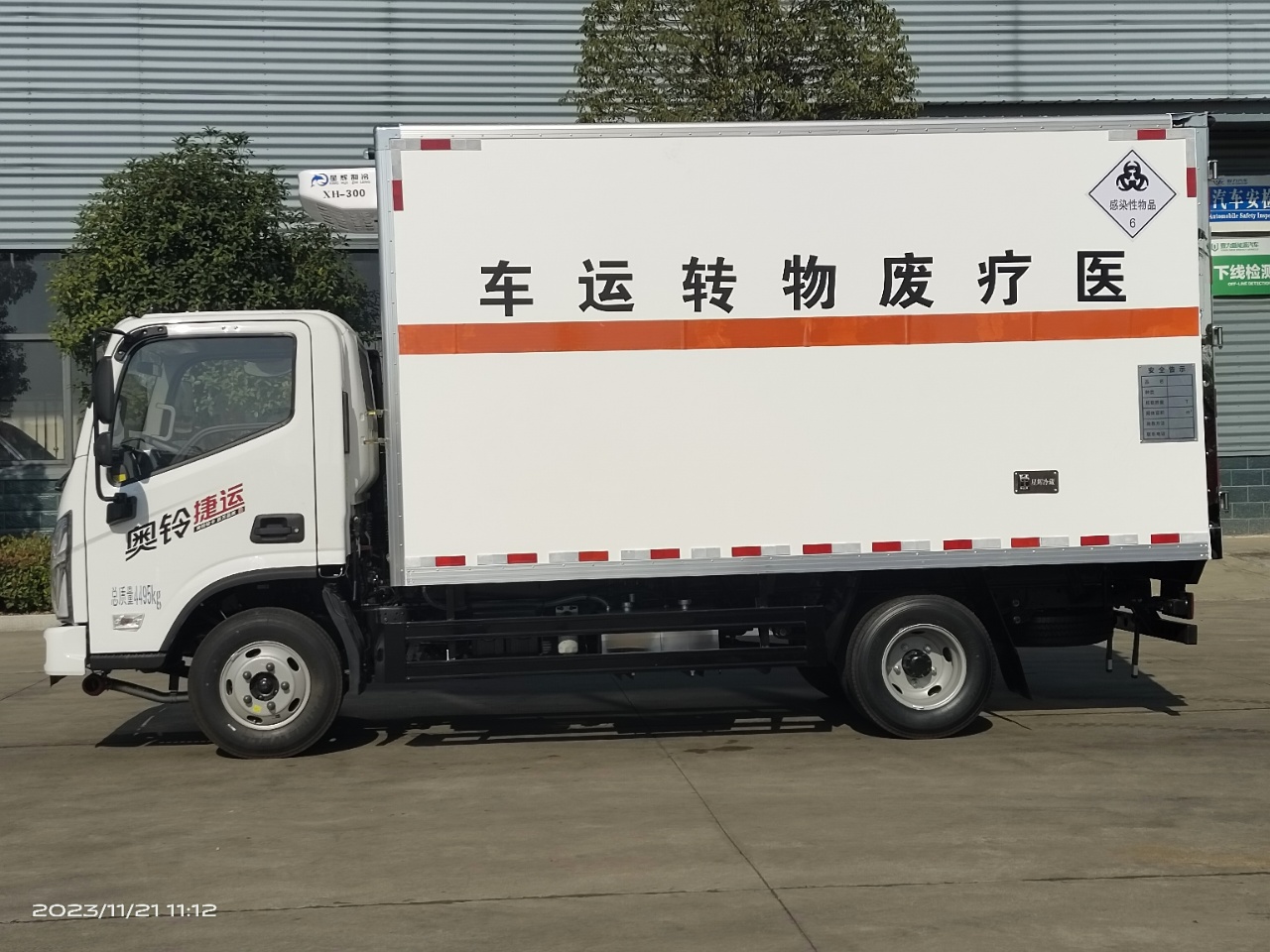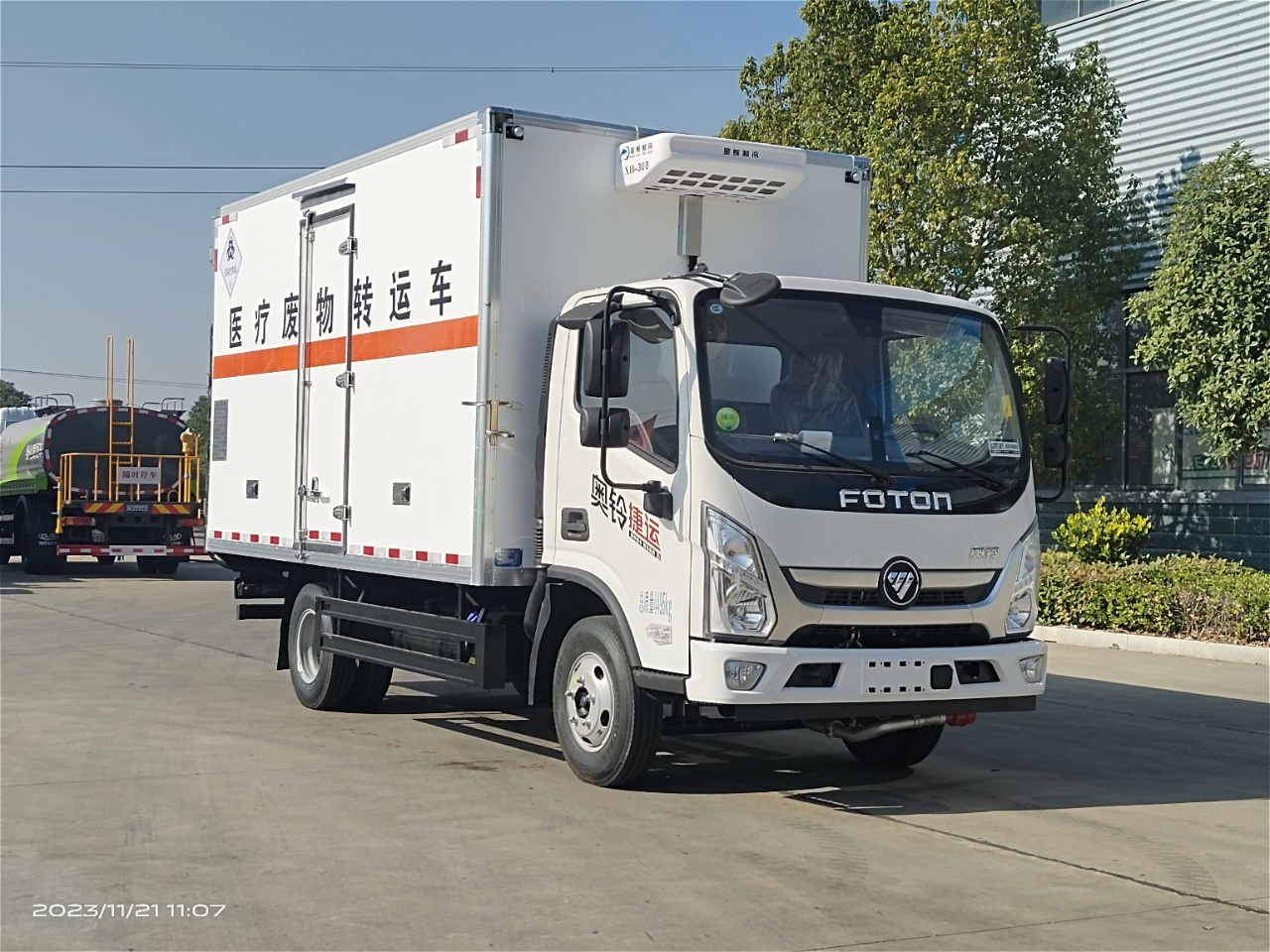 福田奧鈴國六醫療廢物轉運車裝載噸位可達5噸,箱體內帶紫外線消毒燈,尾部可加裝液壓尾板,整車不超重,該車支持定制,讓您使用更省心!