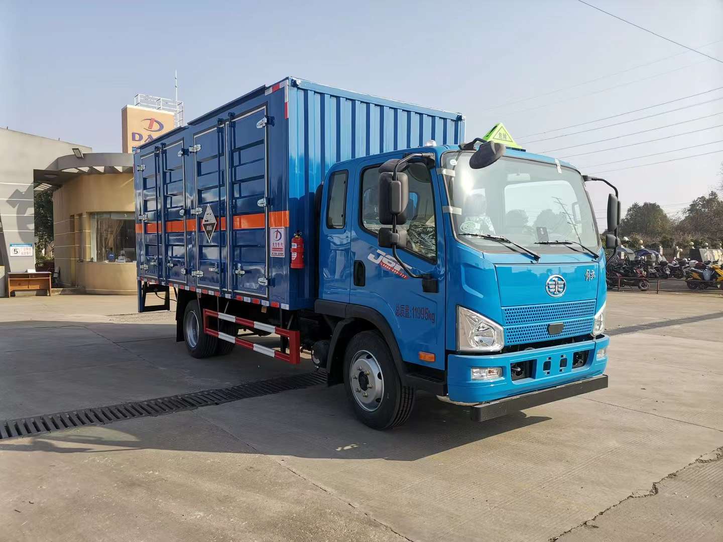 解放J6F國六瓦楞板排半危險品車選用的是危化品專用底盤,可選濰柴160馬力和大柴180馬力發動機,該車匹配的是中控鎖、電動門窗、原廠空調,寬體3人座駕駛室,定制的是整車藍色,顏色鮮艷奪目。匹配我司用專用機械折彎而成的瓦楞板,內部鋪設不銹鋼放腐蝕,且比復合雙層阻燃板成本更低。