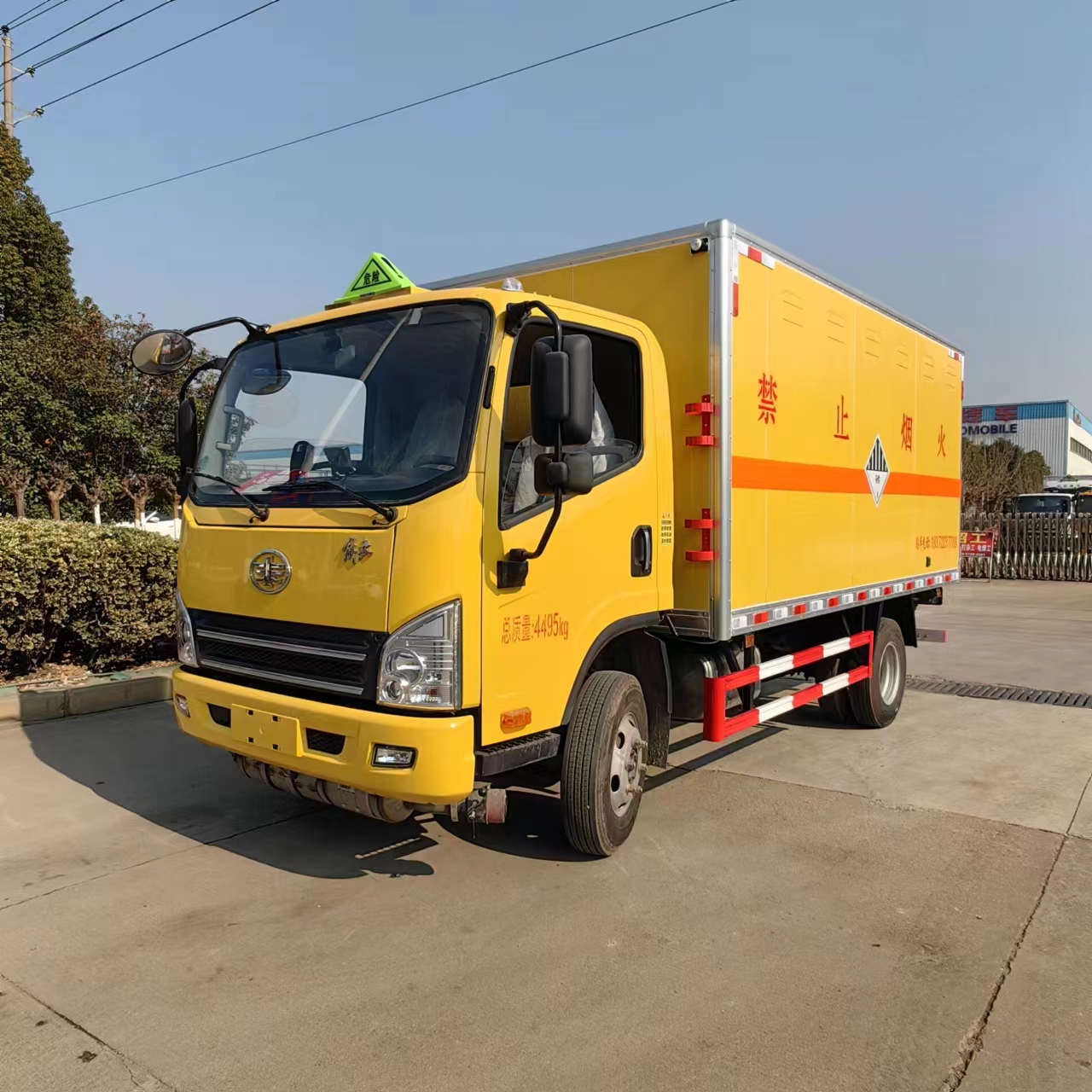 解放虎V國六黃色雜項危險品車選用的是寬體3人座駕駛室,可選濰柴130馬力或者錫柴140馬力發動機,匹配的是帶中控鎖、電動門窗、原廠空調等配置,解放定制的整車工程黃,顯眼奪目很容易被識別,也給周邊的人一種提示作用。針對專門運輸九類的車型,我司定制的是專用的污水槽,箱體底部帶廢液收集箱,便于清理廢機油、廢鎘、廢液、廢油渣等九類危險品。為了讓車輛更安全,我司的所有車輛全部采用的是防爆防阻燃箱體,箱內全部匹配的是煙霧提示器和防盜提示器。箱體側門可選帶一個雙開側門、兩個雙開側門,或者加裝液壓尾板,多種配置可選,讓您適應更省心!