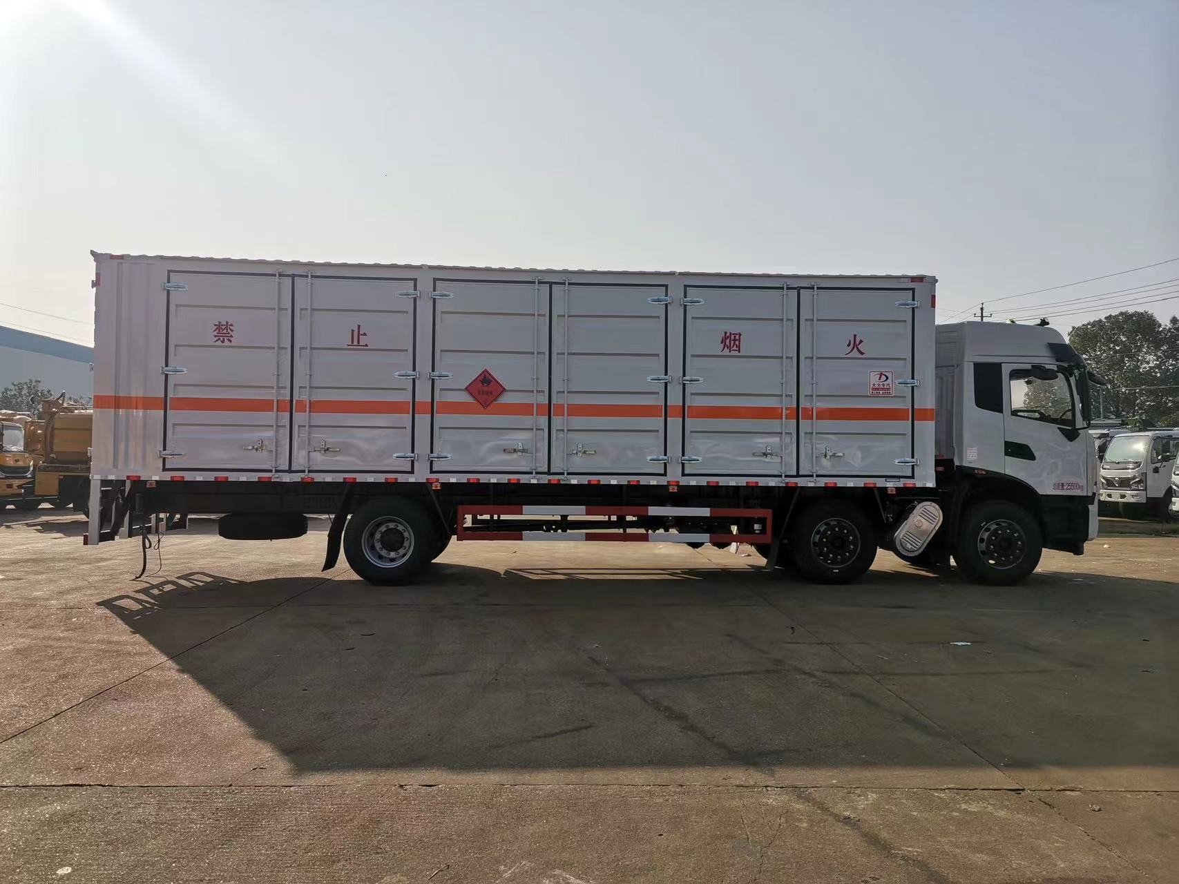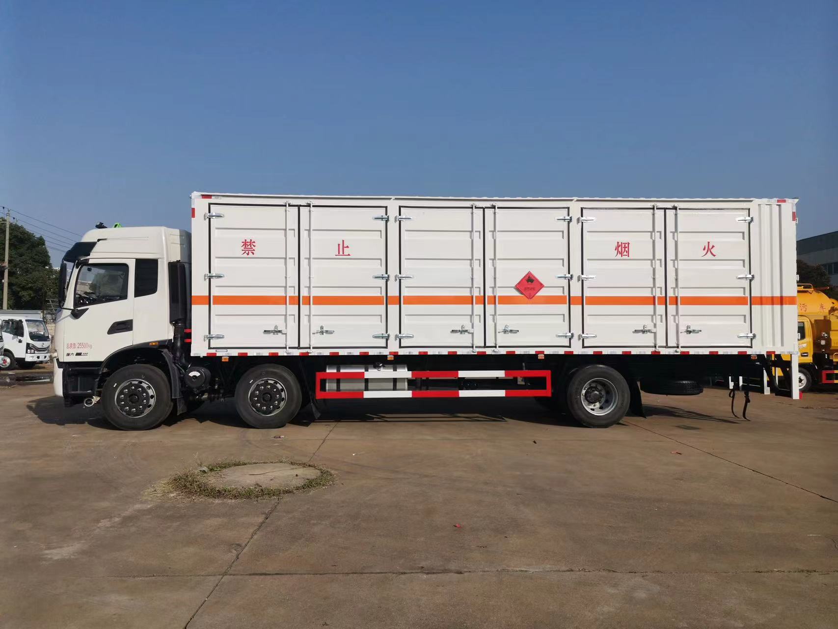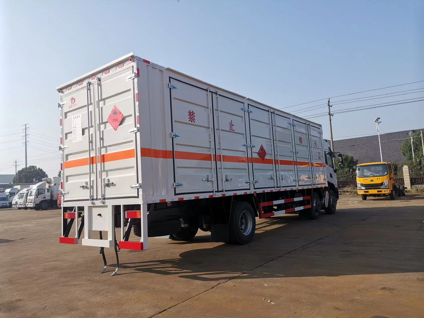 天錦三軸高頂雙臥7米7雜質危險品車選用的是;穼S玫妆P,底盤型號:DFH1260BX2,選用的是D560天錦KR高頂雙臥駕駛室,1995+4200mm軸距,專用定制的是7.7米廂長,大同8檔變速箱,4.5T雙前橋,后橋10T,1995+4200 mm軸距,250×80×7車架,295/80R22.5 18PR真空胎,速比4.89,鋁280L油箱,帶空調,電動玻璃,中控鎖,氣囊座椅,多功能方向盤,前盤后鼓,ECU限速,后橋空懸,帶EBS(電空制動系統),FCWS(防碰撞預警),LDWS(車道偏離預警),TPMS(前軸單臺胎壓監測),ESC(防側翻系統),前輪應急轉向。