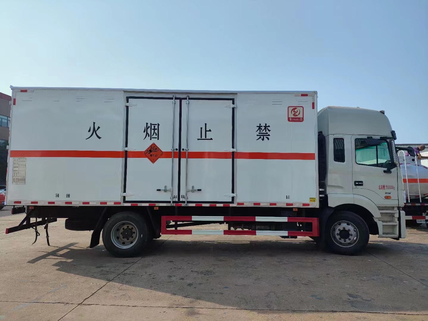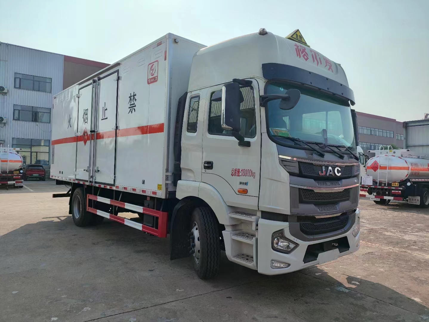 江淮格爾發(fā)6米8國六化學(xué)物品運輸車外板采用冷軋鋼板一次性沖壓成型的百葉窗,內(nèi)飾為導(dǎo)電性能良好的鋁板有透氣孔,內(nèi)襯矩形管骨架牢靠穩(wěn)定,骨架內(nèi)部填充為透氣防潮阻燃的擠塑板。廂體外部四周鋁合金型材包邊,底板和車廂前下部鋪橡膠皮,后門雙開,右側(cè)選裝側(cè)開門,內(nèi)部安裝固定貨物的臥環(huán)或腰欄,安裝煙霧報警器、防盜感應(yīng)器。車身附件靜電接地帶、滅火器、防火罩、危險品三角燈、橙色反光帶、CCC反射器、菱形標志牌、危險品牌、安全告示齊全。