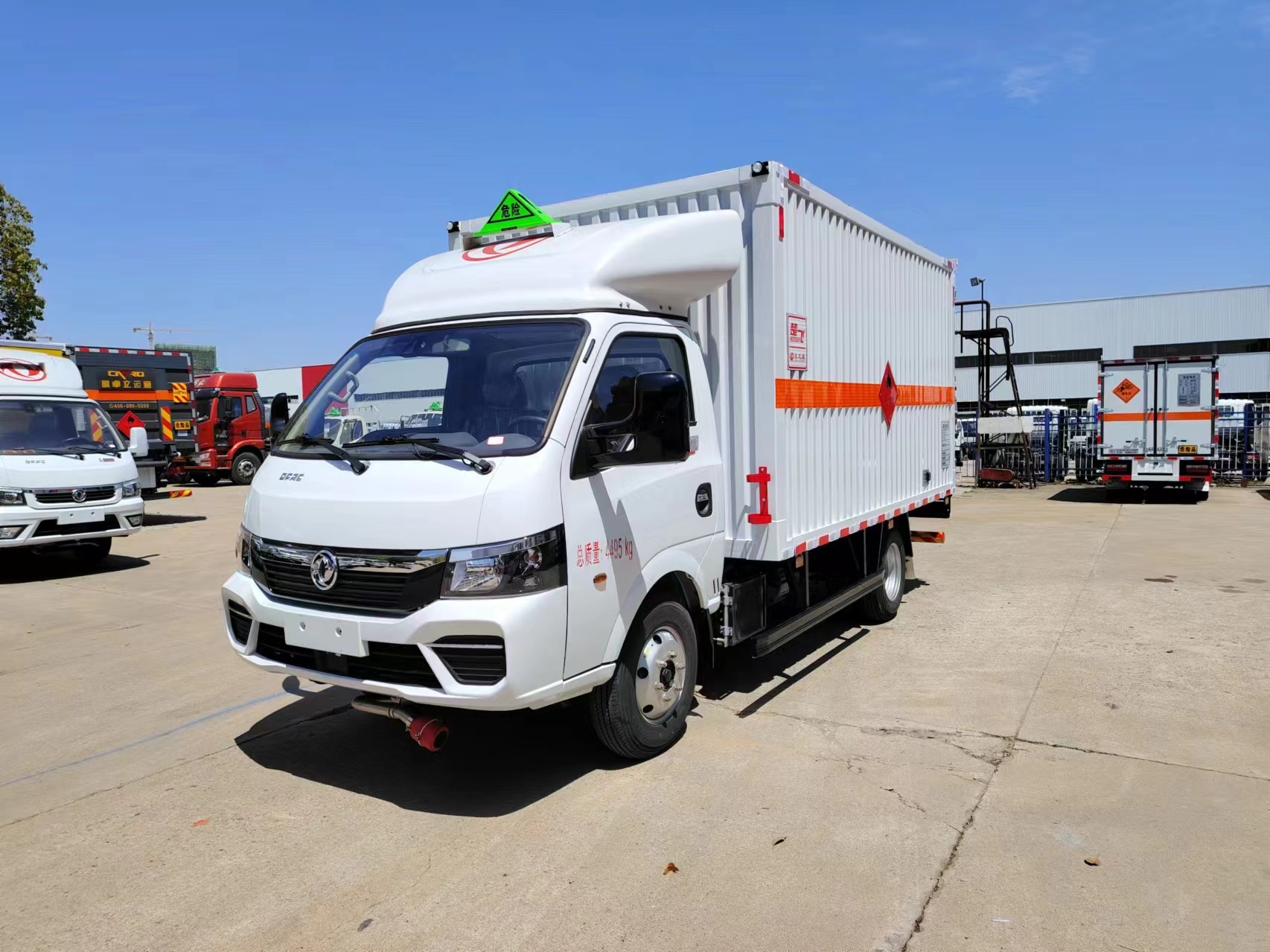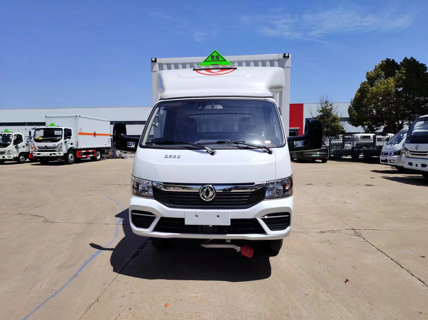 東風途逸3米9柴油危爆車可選復合板箱體和瓦楞板箱體兩種,兩種箱體具體介紹如下:1)復合箱體:廂體采用可產生靜電屏蔽效應的冷扎鋼板,內飾鋁板,中間附以阻燃防潮材料,前置防撞防靜電膠皮。箱體底部鋪防靜電膠皮,后門為對開門,廂體右側開單側門。箱內安裝固定運載物的臥環,門上安裝防盜報警器,箱體頂部防燃煙霧報警器。箱體外側安裝示廓燈及滅火器支架,配兩個滅火器,靜電帶,廂體顏色為白色,供方嚴格按照公告尺寸制作。