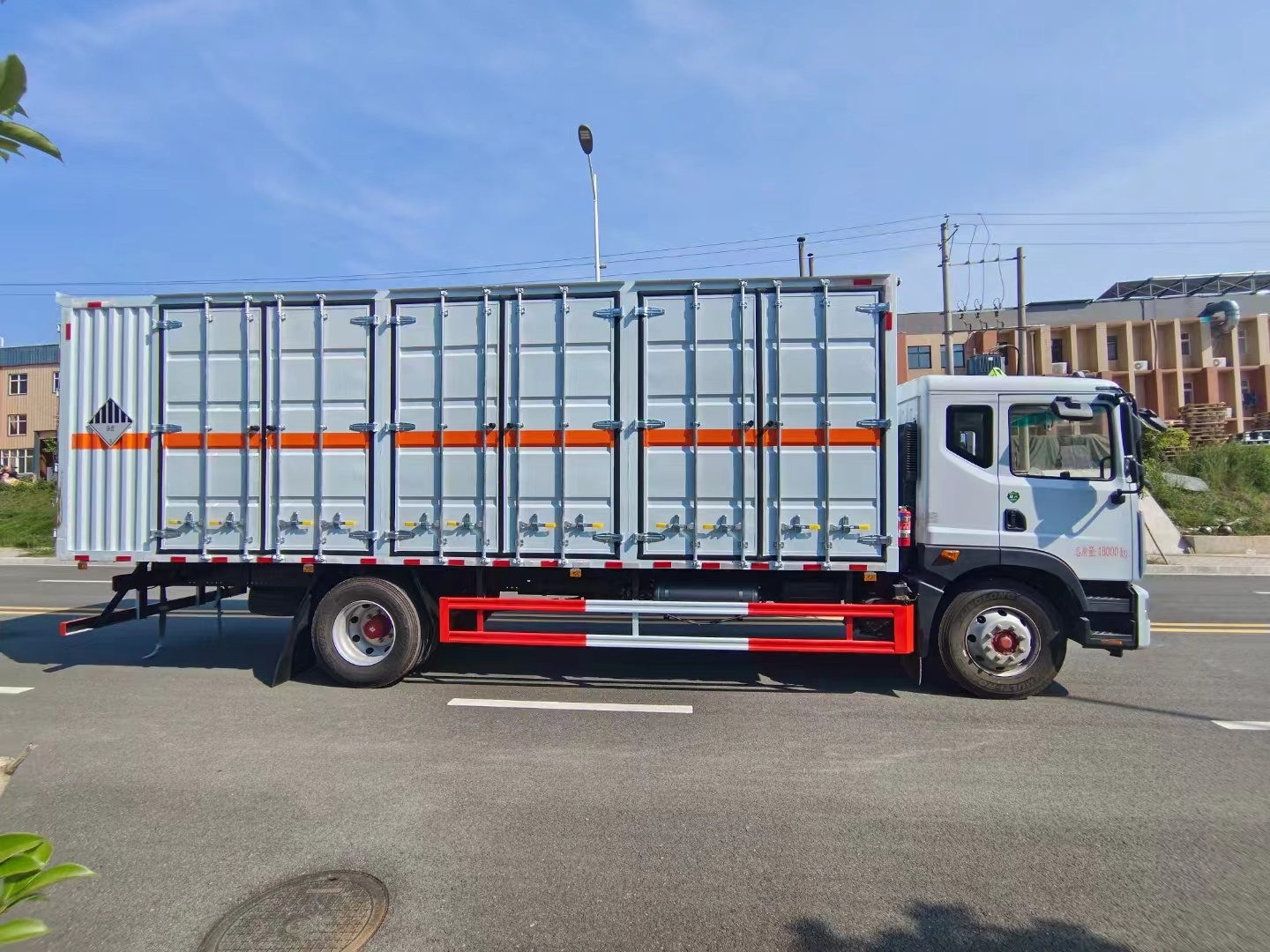 東風(fēng)D9國六帶左右開門雜項(xiàng)危險(xiǎn)品車裝載噸位可達(dá)10噸,尾部可加裝液壓尾板,整車不超重,該車支持定制,可分期付款。