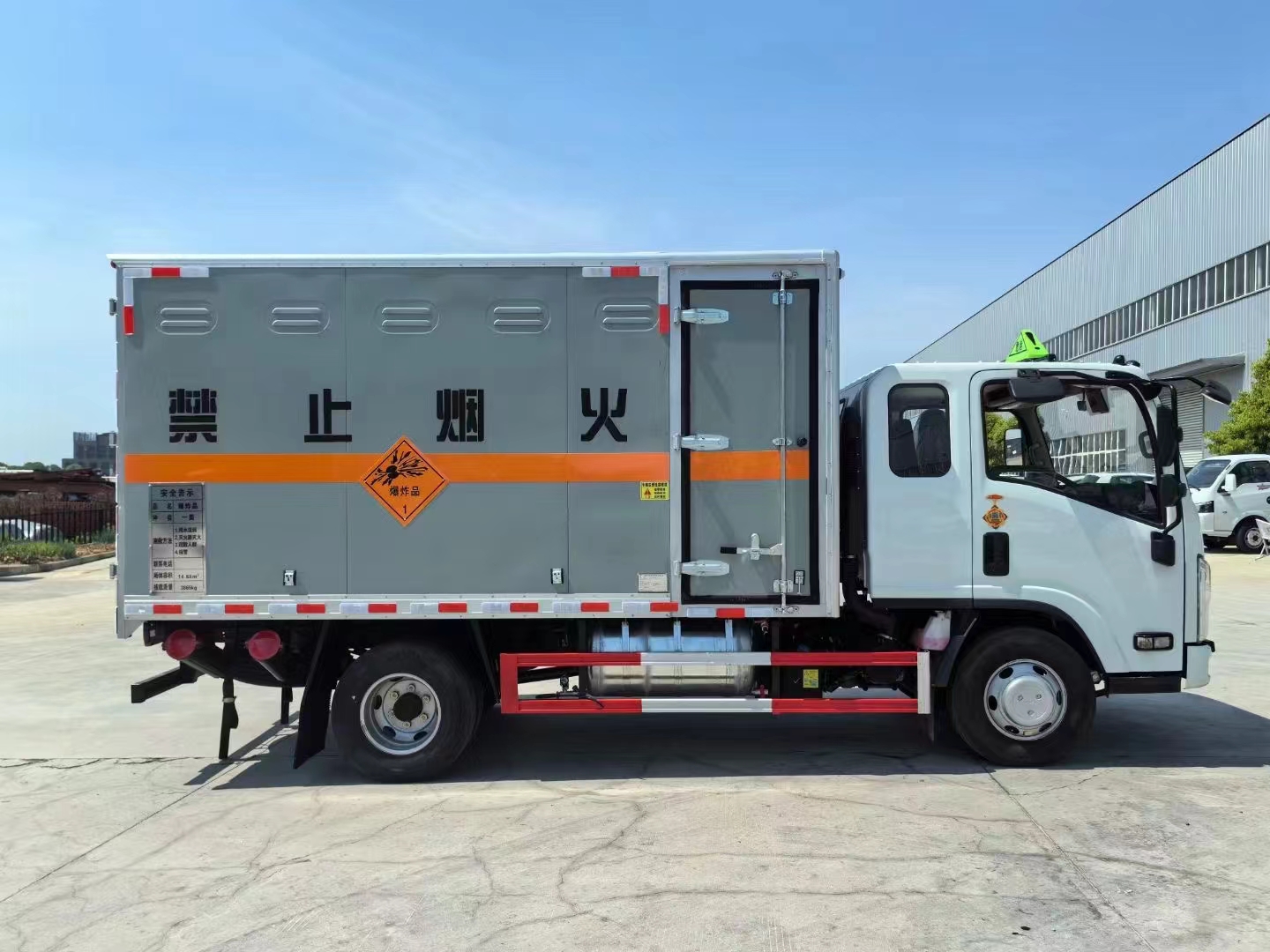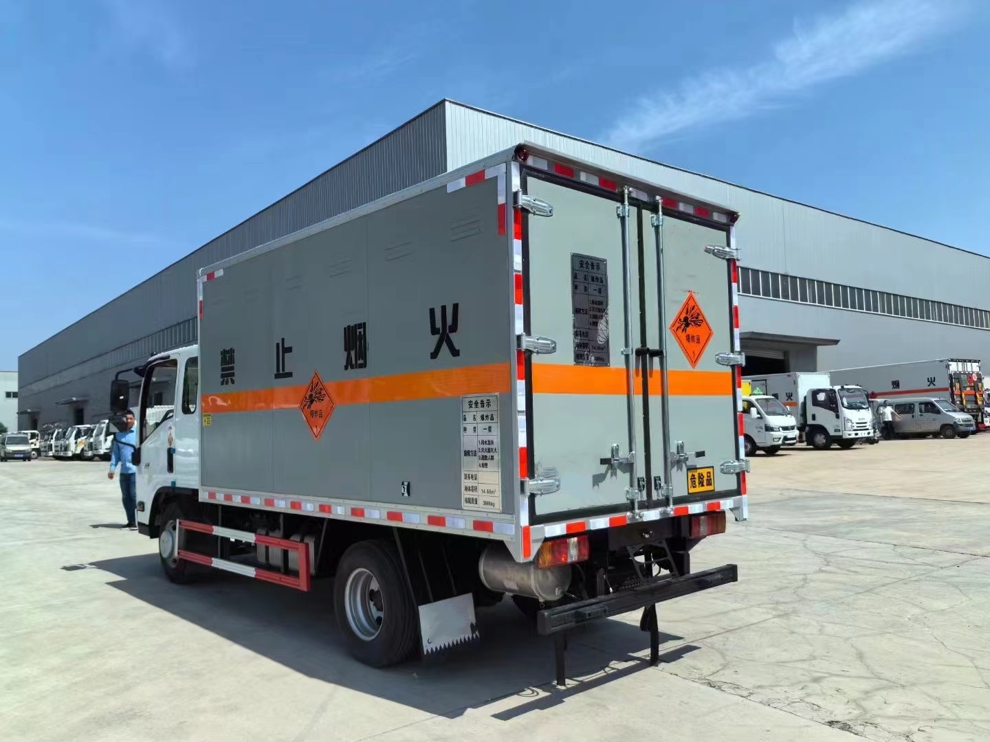 五十鈴排半國六爆破器材運輸車選用的是定制型駕駛室,灰色的箱體,看起來時尚美觀,整車看起來整齊劃一。該車尾部可加裝液壓尾板,支持分期,讓您用車更無憂!