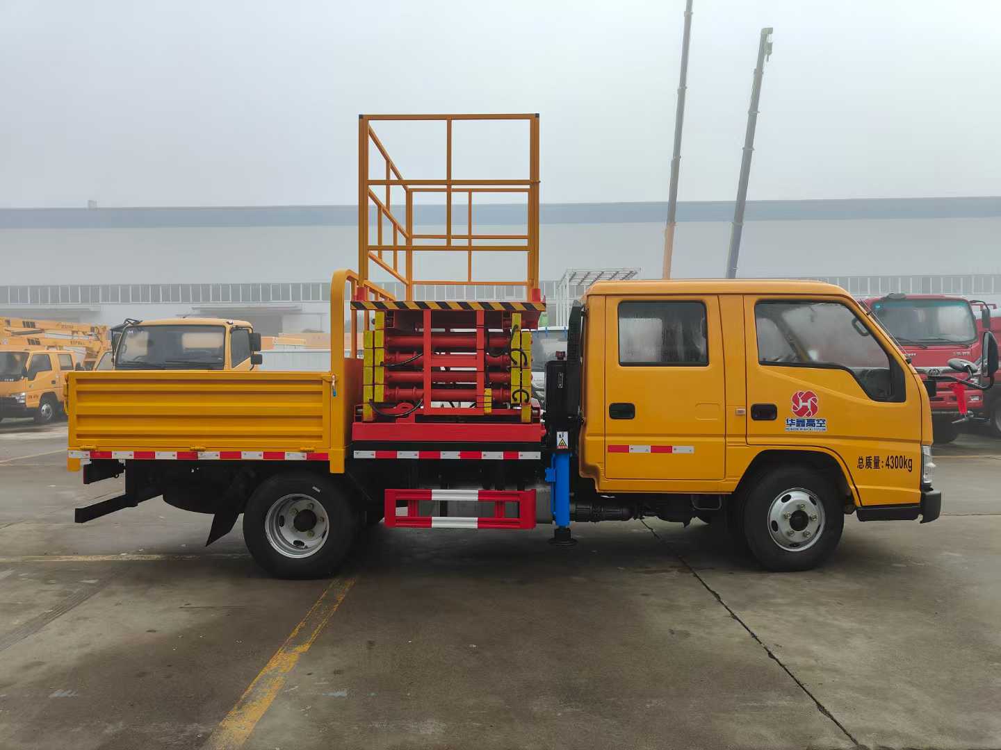 江鈴12米國六帶升降平臺車公告型號:CL5045JGKA6DS,底盤采用江鈴122馬力發動機 ,7.00鋼絲胎,油剎,五檔變速箱,帶助力帶空調,前橋2噸,后橋3.5噸,帶原廠ABS,排氣制動。上裝匹配了專用平臺,平臺作業高度可選8米、10米、12米,平臺帶有線遙控操作,目前工作平臺額定載荷:≤500kg,為了維修方便,平臺容納人數:3-4人,支腿可單獨控制,帶自動調平功能。