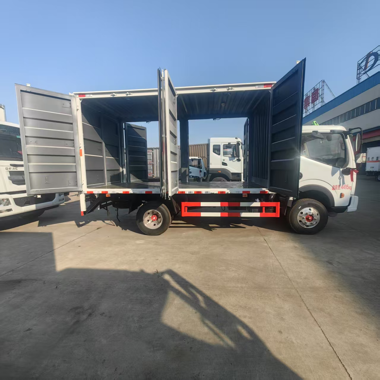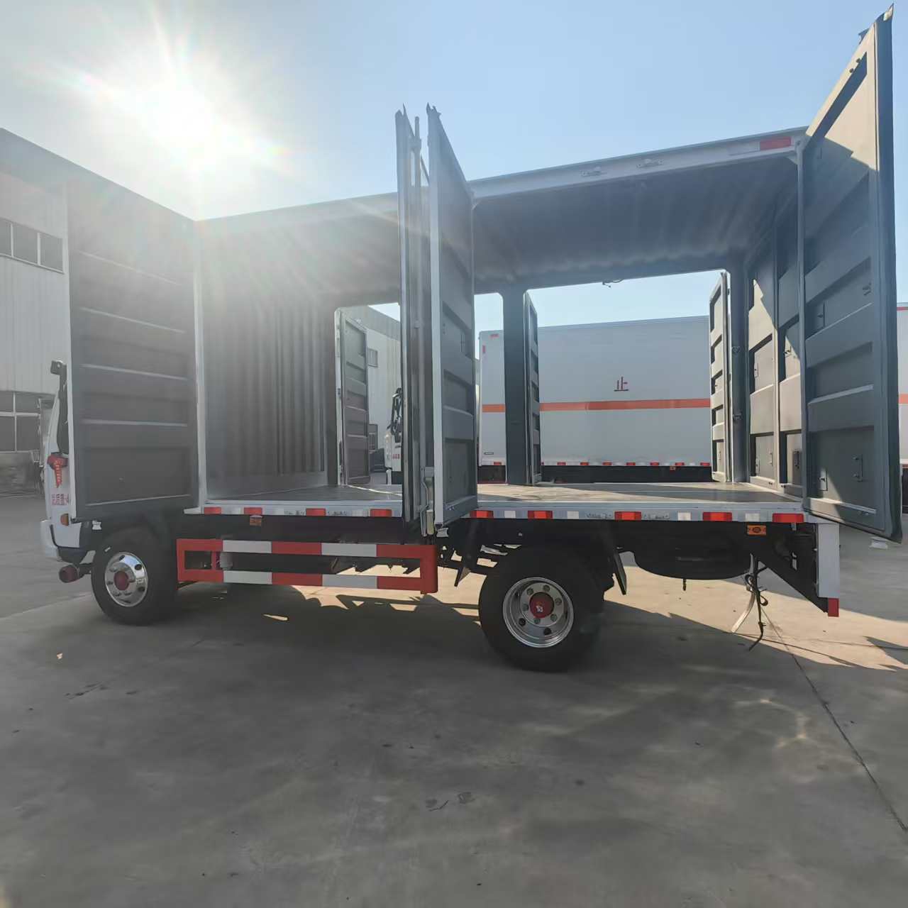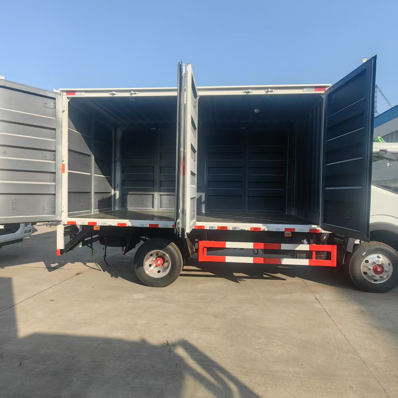 東風多利卡藍牌全開門危險品車選用的是;穼S玫妆P,可選全柴136馬力發動機或玉柴140馬力發動機,匹配中控鎖、電動門窗、原廠空調。齊全的配置,豪華的內飾,給您不一樣的體驗感。箱體左右各帶兩扇門,方便開啟