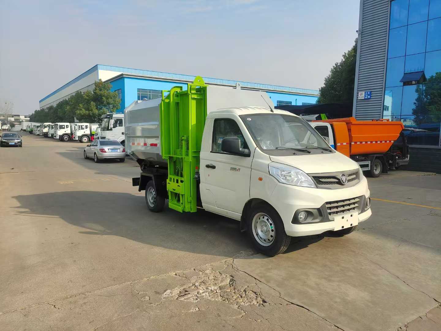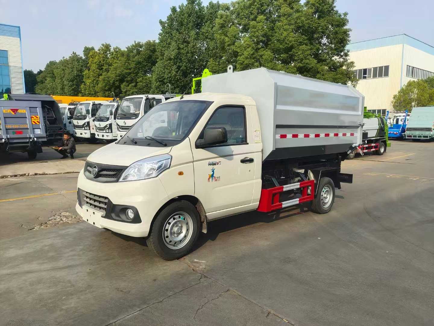 福田祥菱國六掛桶垃圾車,箱容積約4方側邊帶掛桶機構,箱體舉升自卸。采用的半長頭駕駛室設計,在提升駕駛員舒適度的同時,通過優化空氣動力學降低能耗;拉臂機構經10萬次疲勞測試,U型梁整體沖壓成型,惡劣工況下壽命延長50%;并且多規格箱體兼容。該車可以掛120L和240L兩種規格的塑料垃圾桶。輕便靈活的車身設計可穿梭于狹窄街巷和高密度的樓房社區,實現高轉運量,液壓聯動裝置實現20秒內完成空/滿箱體切換,單日處理量提升40%,適用于垃圾中轉站高頻作業場景,搭配東安動力降低燃油消耗15%,滿足住宅區靜音作業需求;搭載的低排放動力引擎與智能監控平臺,更實現了作業過程低碳化與清潔化管理。這一產品的規模化應用,標志著中國城市垃圾處理正式邁入“高效+環保”雙驅時代。
