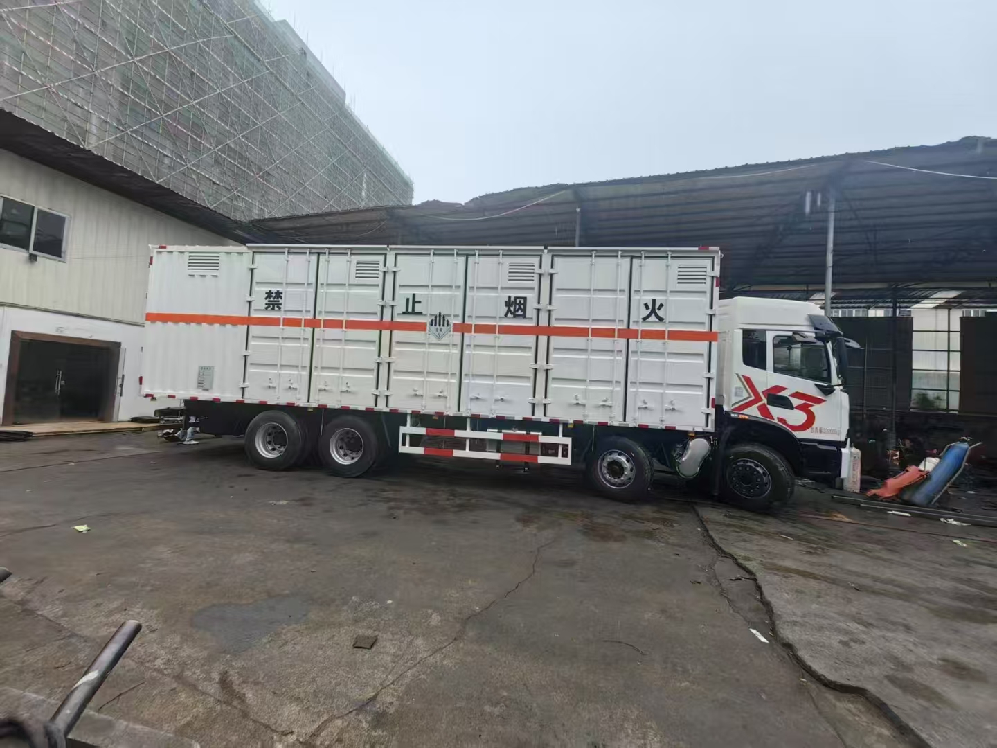 東風X3帶三開側門雜項危險品車額載噸位可達20噸,箱體可做多種顏色,滿足多項需求,重點是加高加寬的駕駛室,駕駛視線寬廣,安全性更高。
