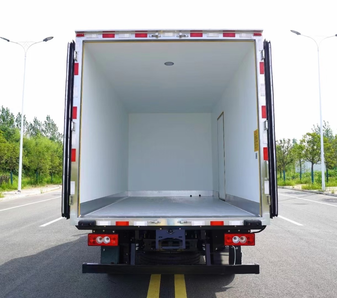 福田奧鈴寬體172馬力藍牌冷藏車整車型號:BJ5045XLC8JBA-AB8,廂體尺寸:4085*2100*2100mm。選用的是康明斯172馬力發動機,萬里揚六檔變速箱、7.00R16LT輪胎、150L大油箱、直通大梁、原廠空調、動力轉向、方向助力、有晝行燈、多功能四向調節方向盤、定速巡航、氣剎(帶斷氣剎)、MP3+藍牙功能,中控鎖+電動門窗+遙控鑰匙、自動大燈帶可調高度,兩個80A·h 12v蓄電池、軸距:3360mm,在4米2車型中,這一款車可謂是配置非常高的一款車型。