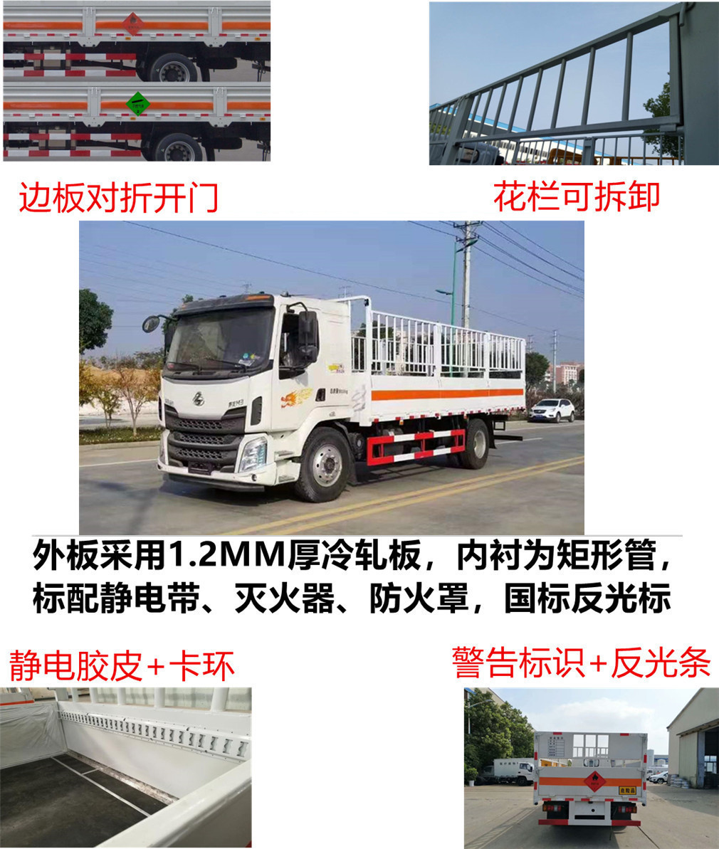。嚴格按照公告尺寸制作,邊2底5材質,底板上鋪靜電膠皮,側板上帶可卸式高欄,配備滅火器,三角頂燈,靜電拖帶等,嚴格按照國家危險品法規進行“易燃氣體”標識粘貼等