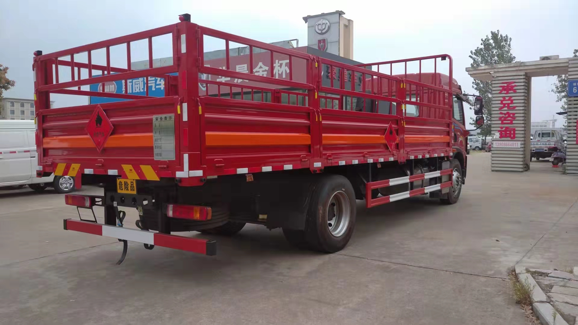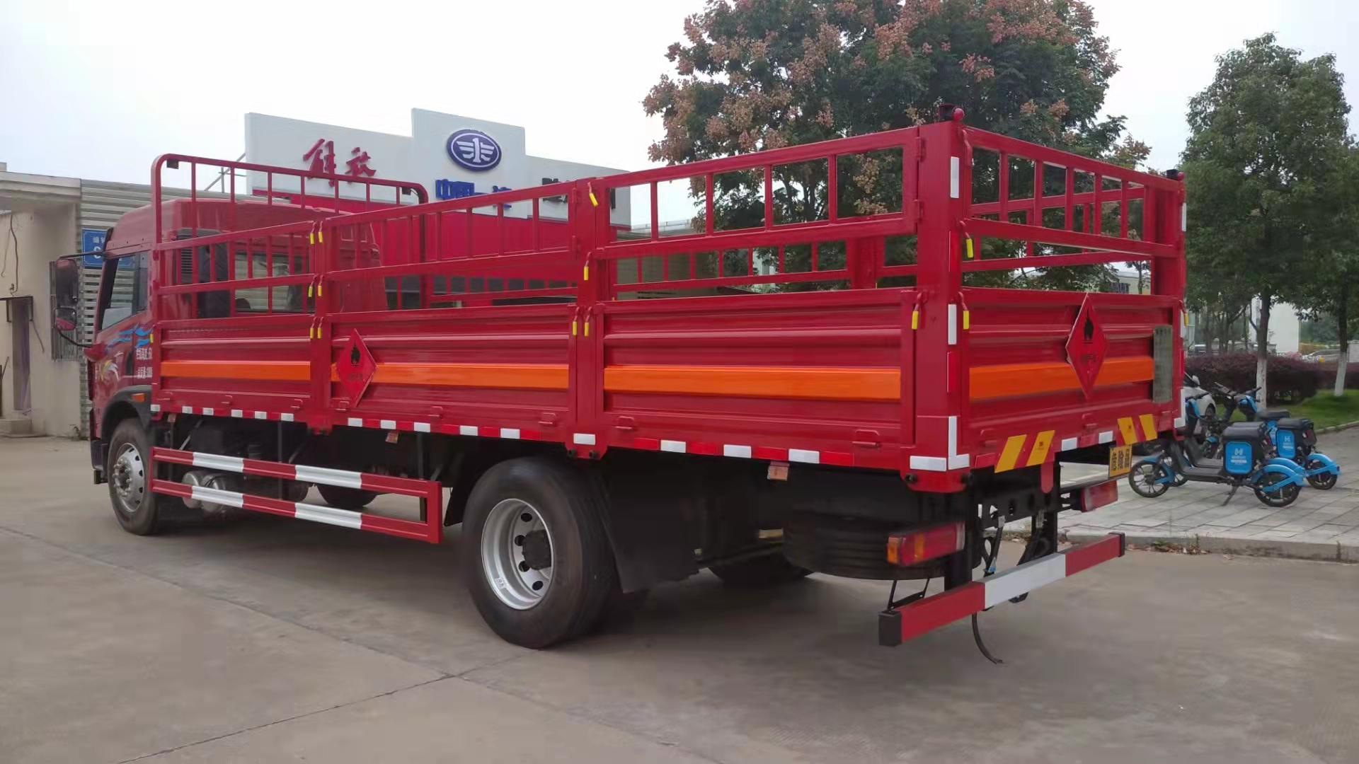 安裝有限速裝置;安裝有具有衛星定位功能的行駛記錄儀;運輸獨立容器(瓶)包裝的貨物;AT型車輛;ABS型號:VIE ABS-II;ABS生產企業:浙江萬安科技股份有限公司;限速裝置限速(km/h):80;.選裝多種平板及瓦楞結構的箱體和有無柵欄樣式.運輸的氣瓶盛裝介質2.1項易燃氣體時,車輛左、右側及后部粘貼“易燃氣體”標示牌,運輸的氣瓶中盛裝介質2.2項非易燃無毒氣體時,車輛左、右側及后部粘貼“不燃氣體”標示牌.該車可選裝ETC車載裝置.僅選用5250mm軸距底盤;發動機/油耗值(L/100km)對應關系為:CA6DLD-22E6/26.5;側后防護情況:后部不帶液壓尾板時后防護裝置材料:Q235,連接方式為焊接,后防護截面尺寸(mm): 120×60,下邊緣離地高490mm,選裝后部帶液壓尾板時,側/后防護材料為Q235,連接方式焊接連接,后防護截面尺寸(mm):120×60,離地高度470mm;尾板、上下坡道(或類似裝置)收起狀態的水平長度(mm):液壓尾板為選裝件,選裝液壓尾板時收起狀態的水平長度為298mm,尾板質量為550kg(不計整備質量之內);專用功能及裝置:該車為危險品運輸車輛;危險貨物類項號:該車運輸具有獨立容器包裝的易燃氣體(類項號為2.1);運輸具有獨立容器包裝的非易燃無毒氣體(類項號為2.2);其他說明:僅采用裝配前輪盤式制動器、前置排氣管、子午線輪胎、后軸裝配空氣懸架、轉向輪安裝輪胎爆胎應急防護裝置的底盤; |