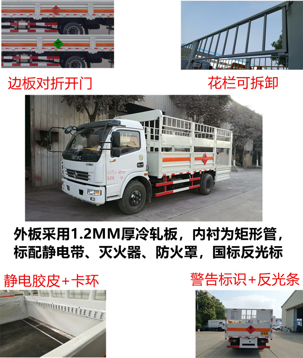 該車為危險品運輸車.廂體頂部封閉,不可開啟.該車用于運輸具有獨立容器(瓶)包裝的物品,類項號:2.1,2.2.隨底盤選裝駕駛室.選掛2.1類易燃氣體警示牌或2.2類非易燃無毒氣體警示牌.選裝側(cè)開門型式及位置,選裝不開側(cè)門,廂體選裝開百葉窗,選裝后部樣式.液壓尾板收起水平長度:280mm,尾板質(zhì)量為350kg,后部安裝液壓尾板時側(cè)、后防護材料為Q235,側(cè)防護焊接連接,后防護螺栓加焊接連接,后防護截面高100mm,截面寬50mm,下邊緣離地高460mm;選裝后部不帶尾板時后防護材料:Q235,連接方式為焊接,后防護截面高100mm,截面寬50mm,下邊緣離地高460mm.僅采用排氣管前置,子午胎,限速裝置,輔助制動裝置和前輪盤式制動器的底盤;限速80km/h. |