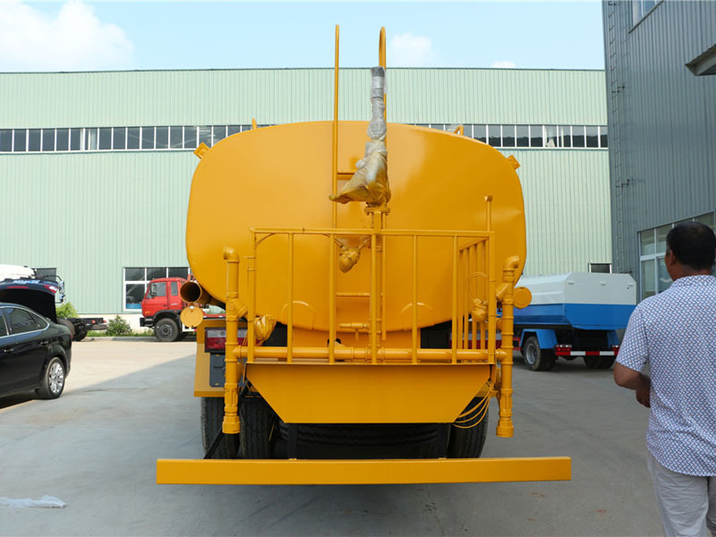 改裝配置:整車帶一個專用灑水泵(垂直最大吸程6米),灑水寬度14米,射程28米。多功能灑水車配備2個前沖(噴)(能將路面泥巴、塵土、垃圾沖干凈);2個后灑(能均勻地將水灑在路面,一次灑水寬度14米)、2個側噴(花灑)(能均勻地將路旁綠化帶澆灌)、帶1個后工作平臺,平臺上安裝1個綠化灑水高炮(炮有大雨、中雨、毛毛雨、霧狀可調節沖洗高大樹木),帶1個消防接頭,帶1個自流閥,1個過濾裝置、人性化爬梯及側防護欄,安裝灑水音樂喇叭。