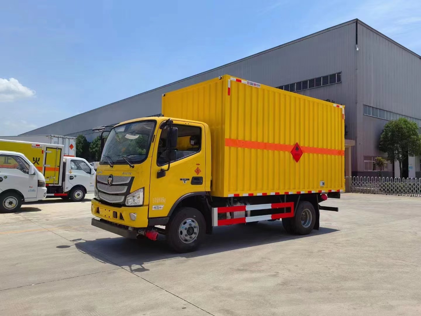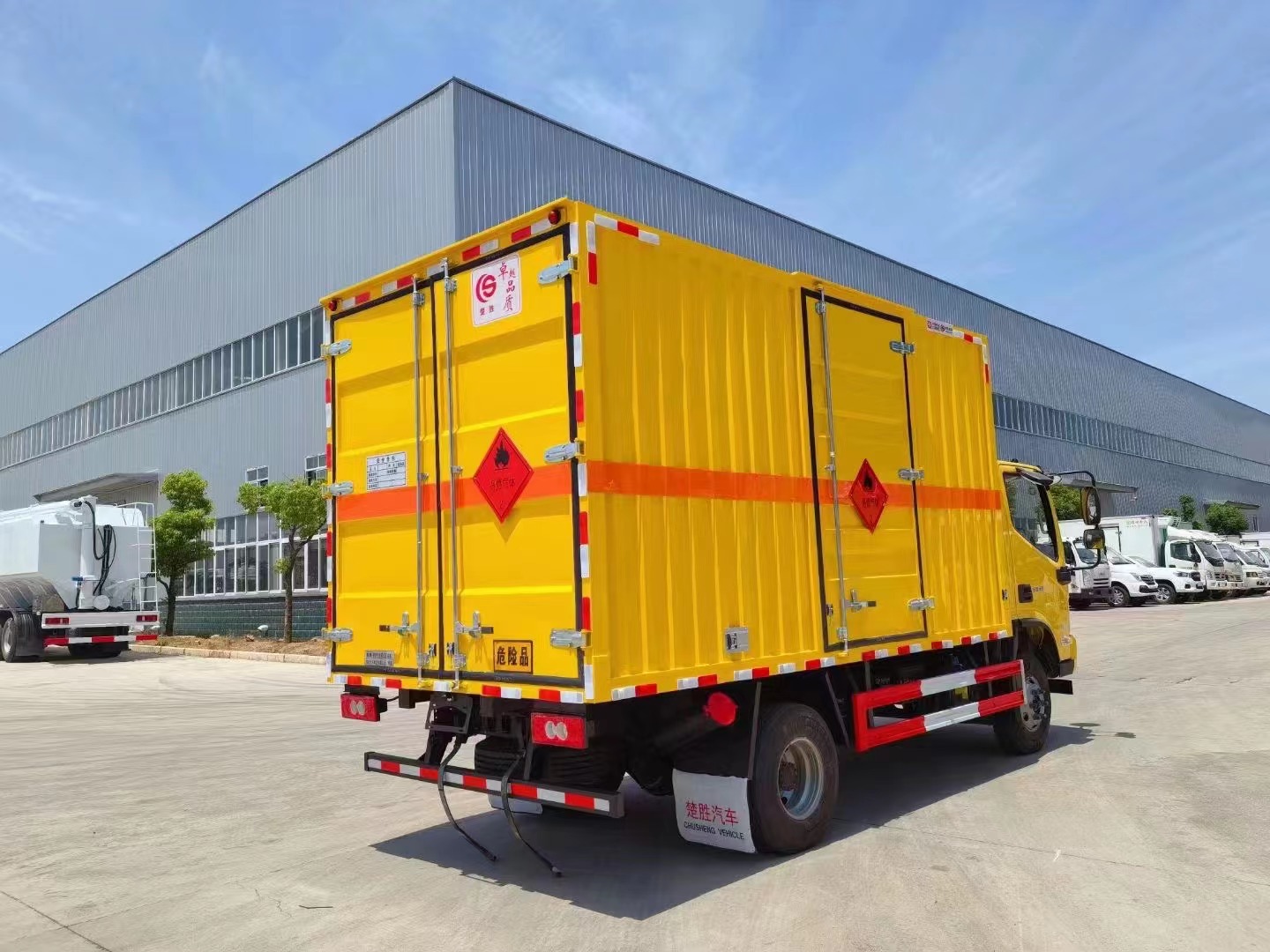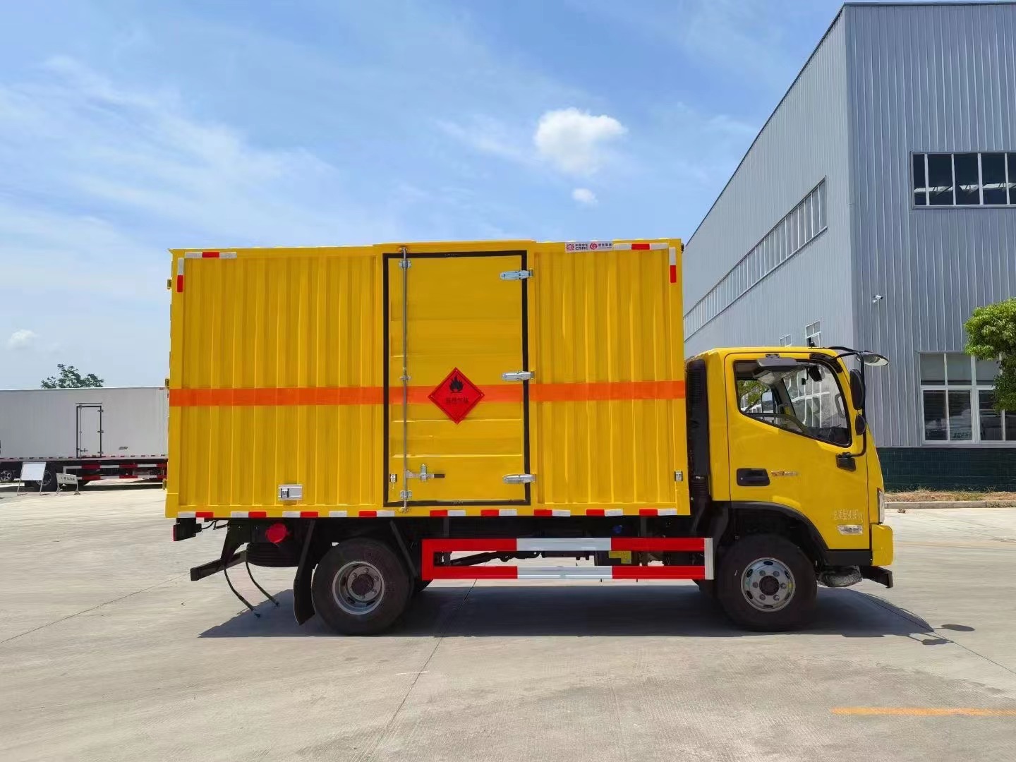 福田歐馬可小黃牌貨廂長(zhǎng)4.08米額載4.5噸易燃液體廂式運(yùn)輸車