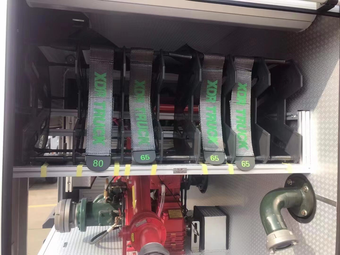 罐體設(shè)有1個(gè)76mm溢流管,車廂兩邊各1個(gè)76mm注入口,便于其他車輛供水加液之用。