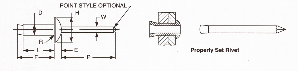 Regular and Large Dome Head Pull Through Mandrel Blind Rivets