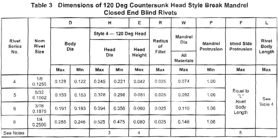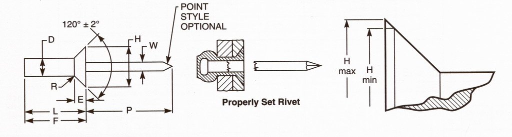 120 Degree Countersunk Head Style Break Mandrel Closed End blind Rivets