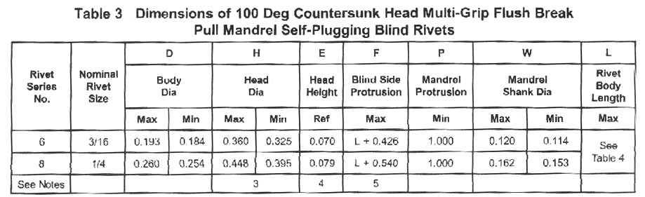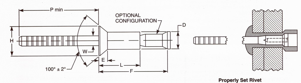 100 Degree Countersunk Head Muti-Grip Flush Break Pull Mandrel Self-Plugging Blind Rivets
