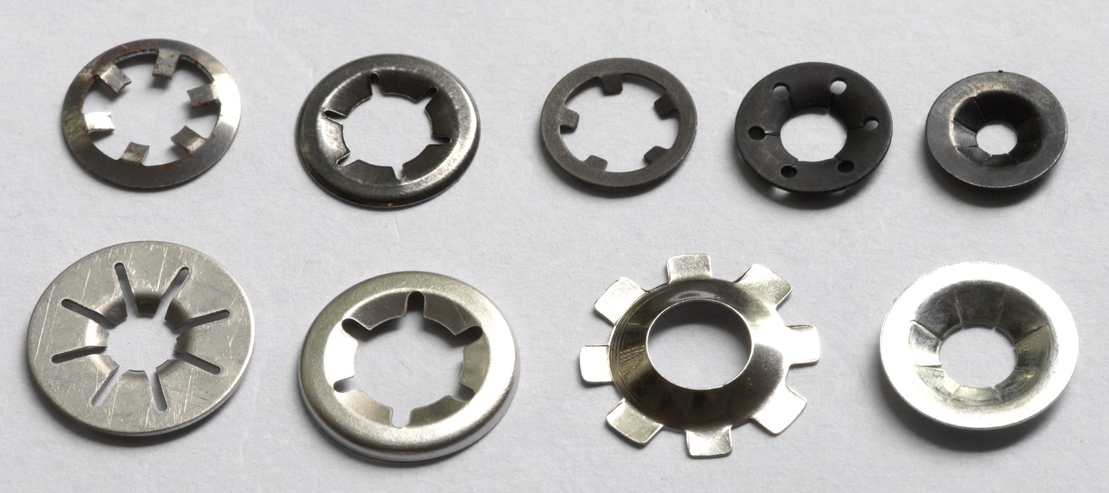 Washers, Plain washers, Square washers, Toothed lock washers, Retaining ring, Conical washers, Conical spring washers, Grower washers, Waveform washer...