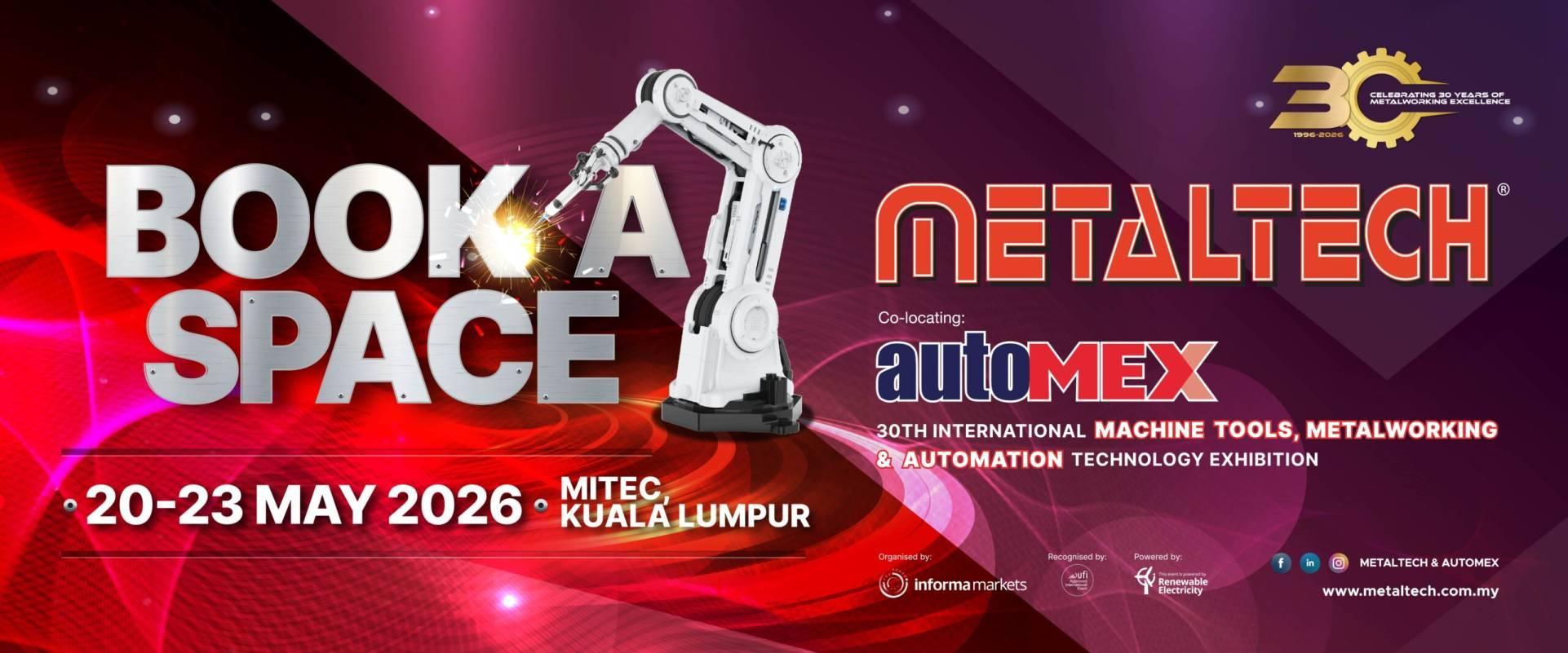 Show Name: METALTECH & AUTOMEX 2026Show Date: 20-23 May 2026Venue: MITEC, MalaysiaOrganizer: Informa MarketsWebsite: https://www.metaltech.com.my/